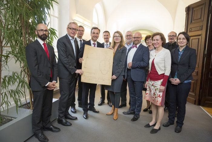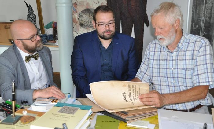 Übergabe der neuen Publikation "in civitate nostra Dreseden" an Oberbürgermeister