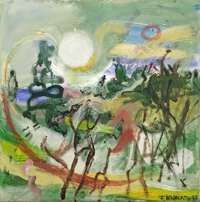 Ihre jüngere Schwester Xuân Lan Nguyễn (*1961) kam 1987 als Vertragsarbeiterin in die DDR. Unter den restriktiven Bedingungen dieser Zeit blieb ihr ein Kunststudium verwehrt. Nach der Wiedervereinigung erkämpfte sie sich eine selbstständige Existenz in Dresden, begann eine Sammlung zeitgenössischer vietnamesischer Kunst aufzubauen und reist nach wie vor regelmäßig zu Studienaufenthalten nach Vietnam, um mit ihrer Schwester zu arbeiten. Künstlerisch findet sie in ihrer Schwester und einst in ihrem Schwager zugleich prägende Mentoren, die ihr den Weg zur eigenen Malerei ebneten – eine Verbindung, die bis heute anhält. In ihren eigenen Malereien gewinnen die einst „armen“ Materialien Kim Thái Nguyễns in Form farbintensiver Drip-Paintings eine neue Dimension, die westliche Ausdrucksformen mit autonomen Bildfindungen verschmilzt. Xuân Lan Nguyễn ist zugleich Vermittlerin und Bindeglied der Ausstellung: Sammlerin, Künstlerin und Kulturakteurin zwischen Hanoi und Dresden.