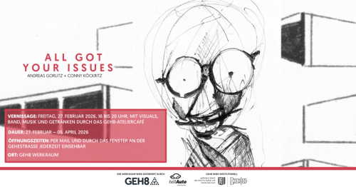 VERNISSAGE: Freitag, 27. Februar 2026, 16 bis 20 Uhr, mit Visuals, Band, Musik und Getränken durch das GEH8-Ateliercafé