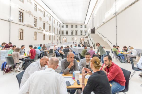 Gespräche führen, Kontakte knüpfen, Deutsch sprechen mit Muttersprachlerinnen und -sprachlern, Migrantinnen und Migranten aus aller Welt treffen, Hausaufgaben erledigen, Bewerbungen schreiben und Tischtennis spielen, immer von Dienstag bis Freitag.