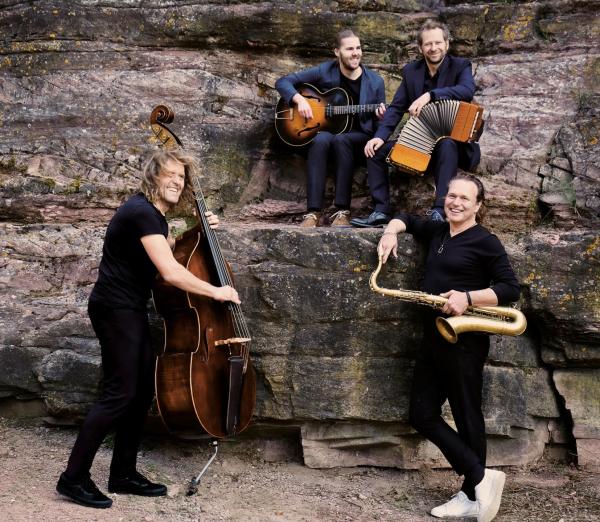 Mit dem extravagant-spielwitzigen Akkordeonisten Andreas Hinterseher und dem durch verschwenderischen Ideenreichtum glänzenden Pianisten Chris Gall leben sie ihre Musik im Hier und Jetzt. Dies erinnert an vier Burschen, die fröhlich musizierend über die südlichen Stadtplätze und Jahrmärkte zogen.
