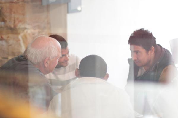 Tisch, Stühle, Tageszeitung: Das sind die Grundmaterialien für das ABC-Tische-Erzählcafé. Migrantische Menschen und Deutsch-Muttersprachlerinnen und -sprachler treffen sich hier und diskutieren Fragen des Zeitgeschehens – immer von Dienstag bis Freitag.