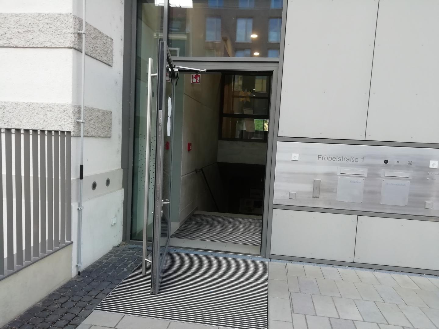B - Hlavní vchod - Vstup do výtahu a sportovní haly