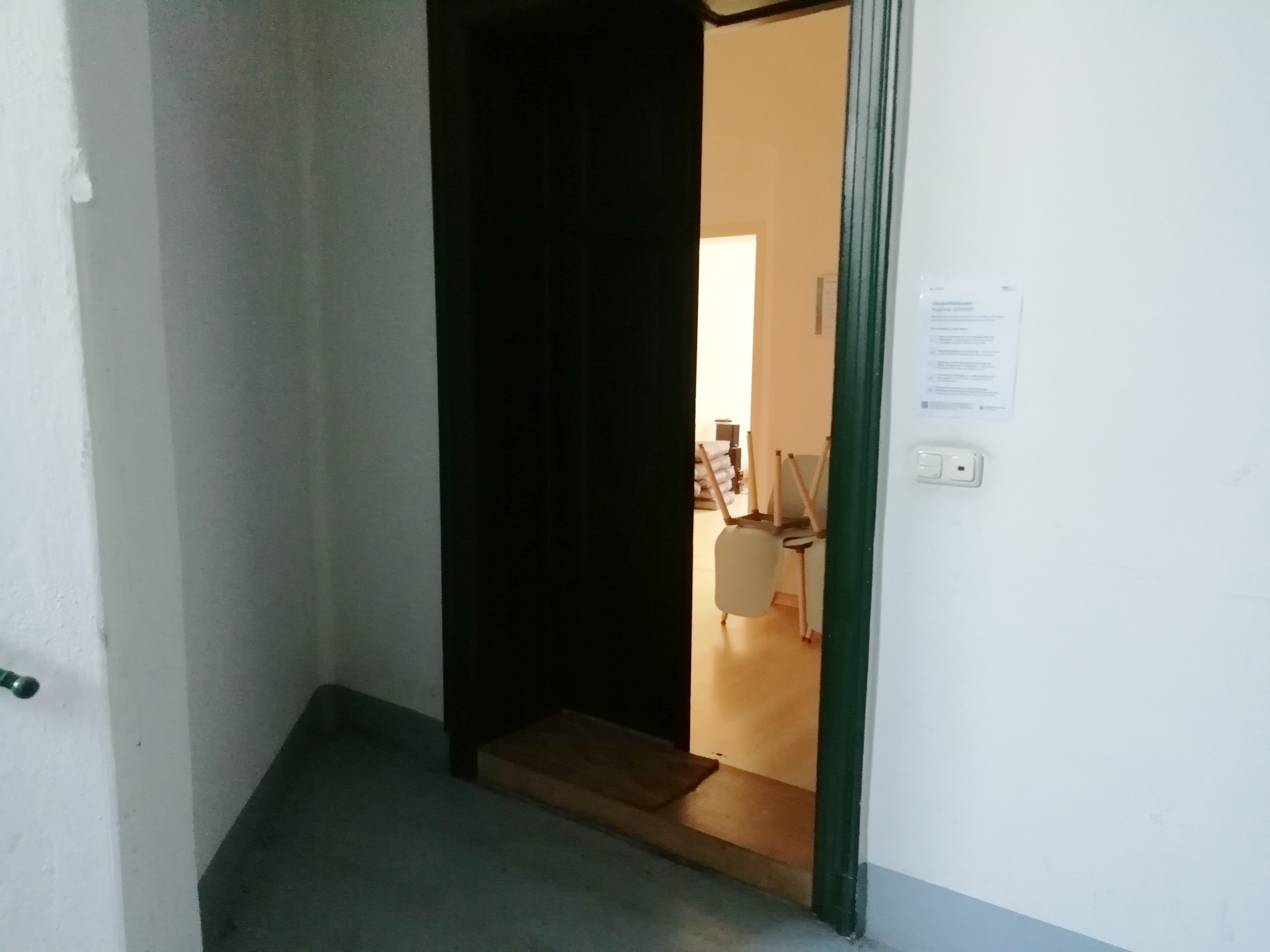 Objekt se nachází vlevo a vpravo v přízemí činžovního domu. Další pokoje jsou v 1. patře.
