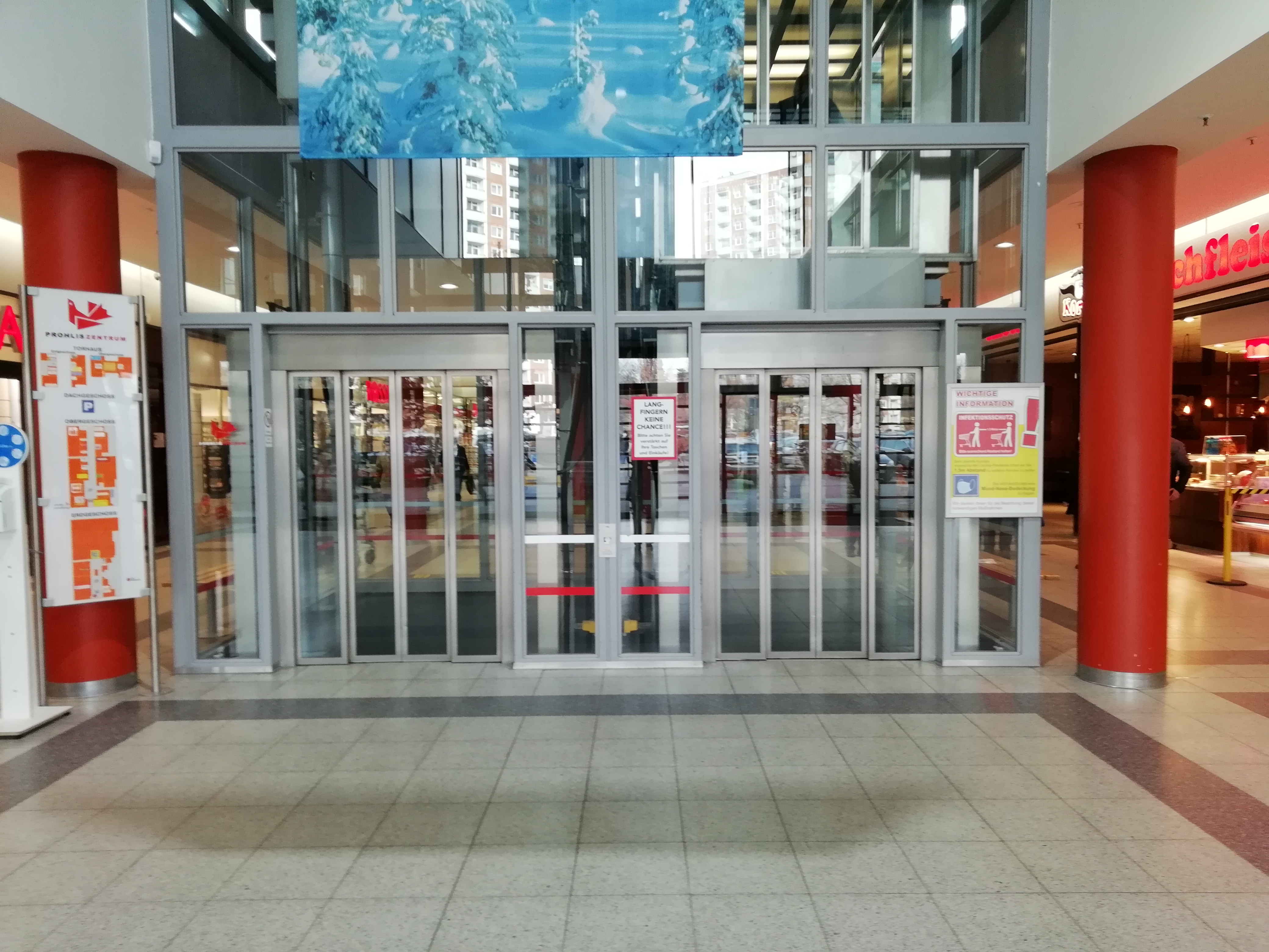 Die Apotheke befindet sich direkt am Eingang aus Richtung Prohliser Allee auf der linken Seite.
