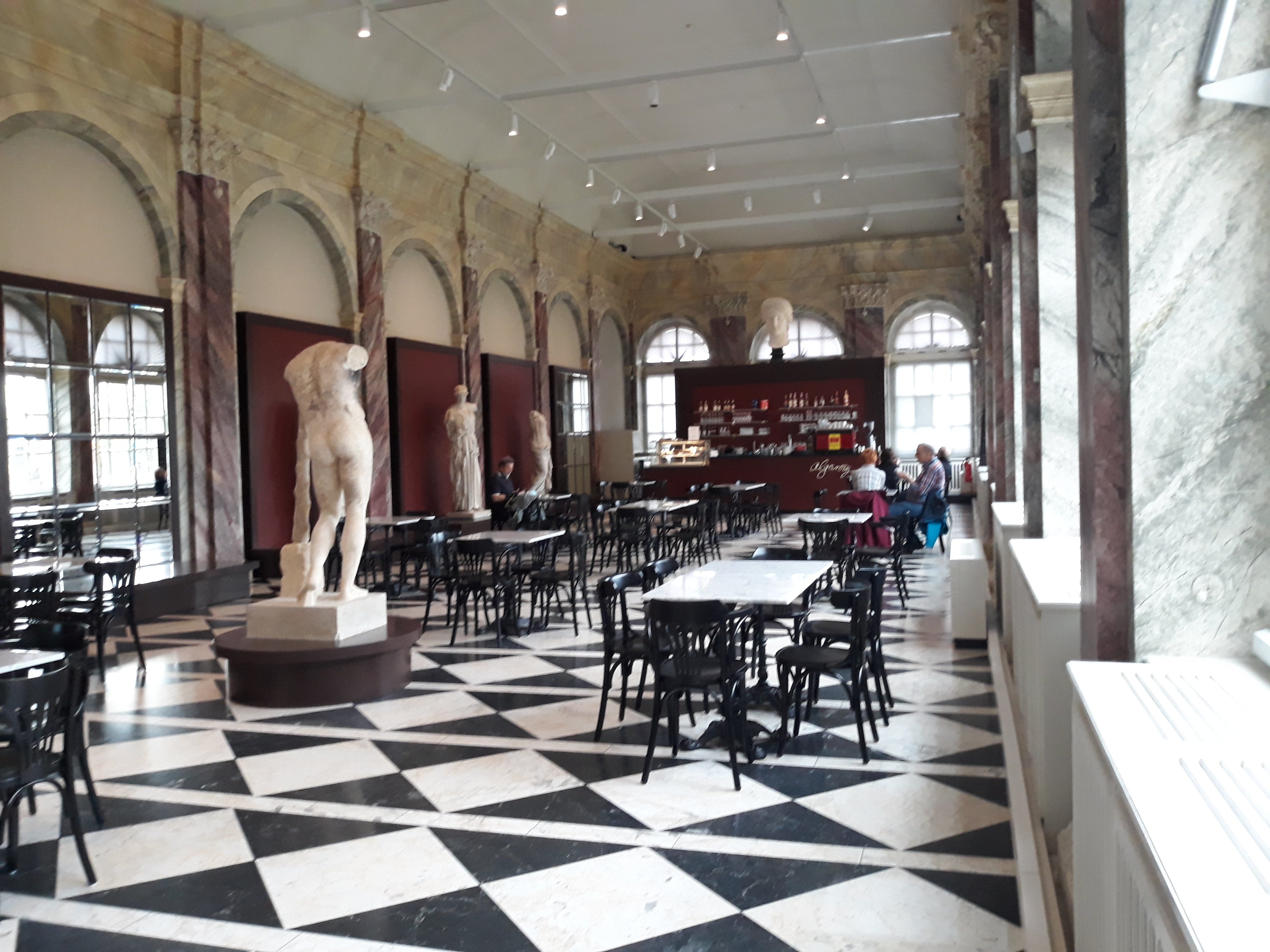 Das Café befindet sich im Zwischengeschoss des Ostflügels.