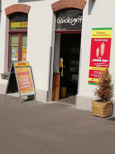 Die Postfiliale befindet sich im Zeitungs-/Lotto-Laden im Erdgeschoss des Altbaus.
