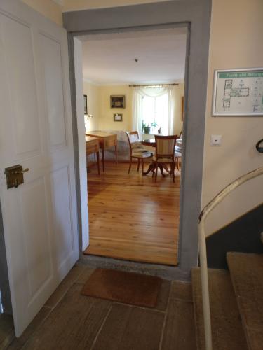 Weitere Stufen bzw. Treppen befinden sich am Hauseingang und im Gebäude.