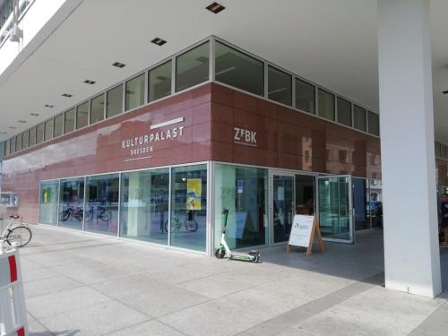 Das Zentrum für Baukultur Sachsen befindet sich im Erdgeschoss an der Ostseite des Kulturpalastes Dresden.