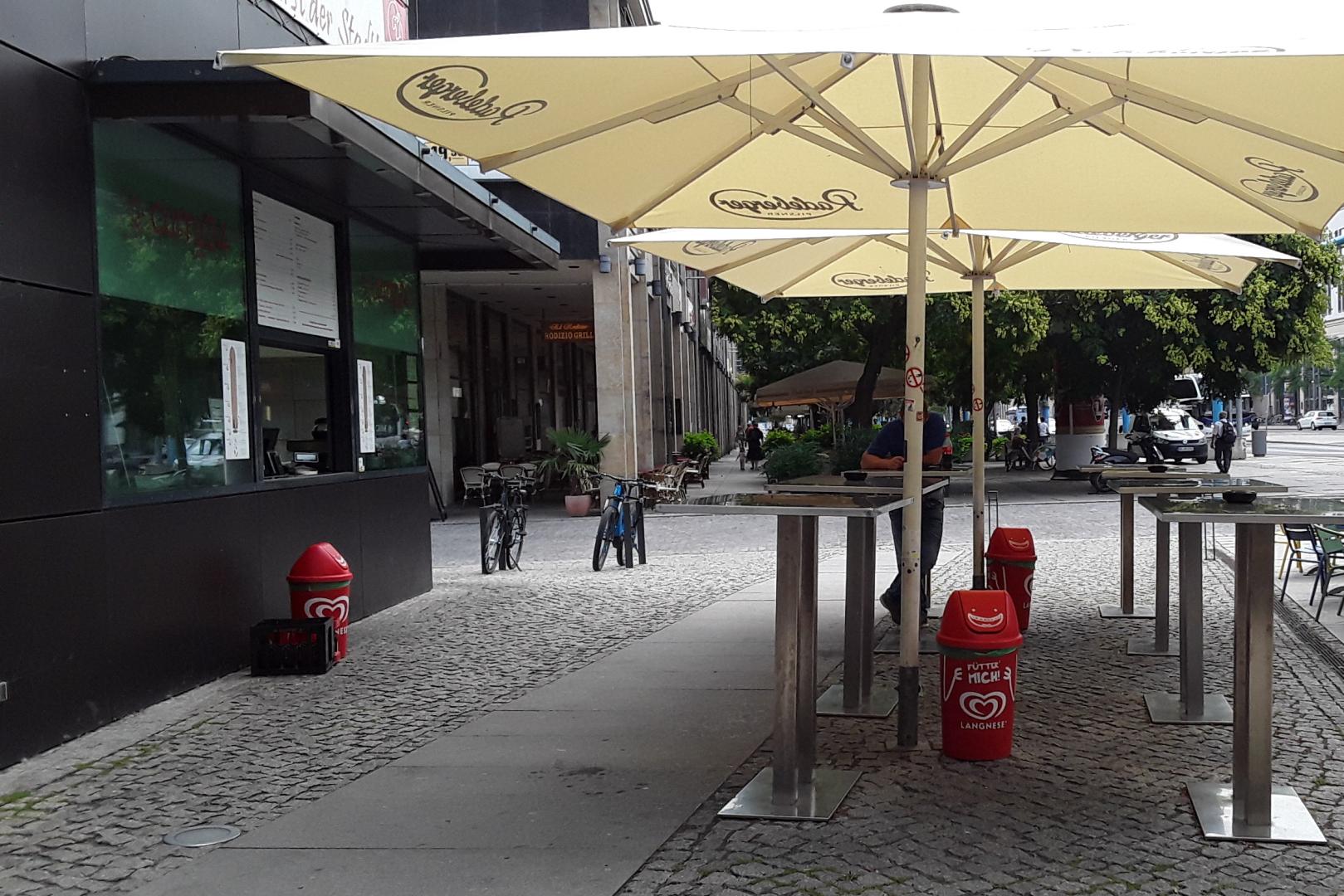 Ein Verkaufsfenster am Restaurant Max sowie eine Terrasse an der Wilsdruffer Straße (Selbstbedienung).