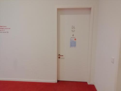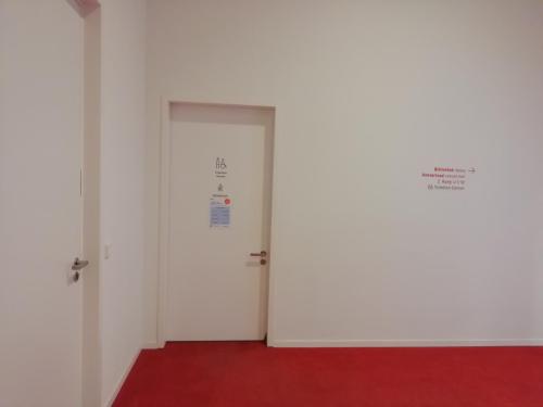 Die innere Tür zum Behinderten-WC ist eine Falttür.
