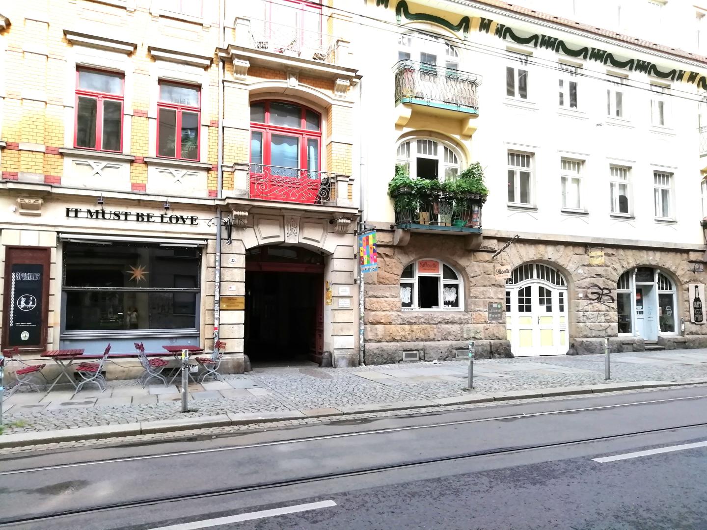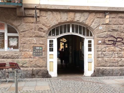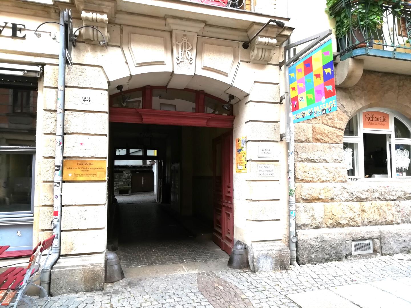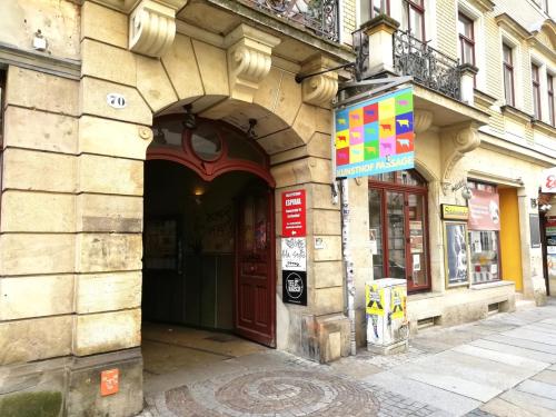 Die Kunsthofpassage erstreckt sich zwischen dem Häuserblock Görlitzer Straße 21-25 sowie der Alaunstraße 70 in den Innenhofbereichen.