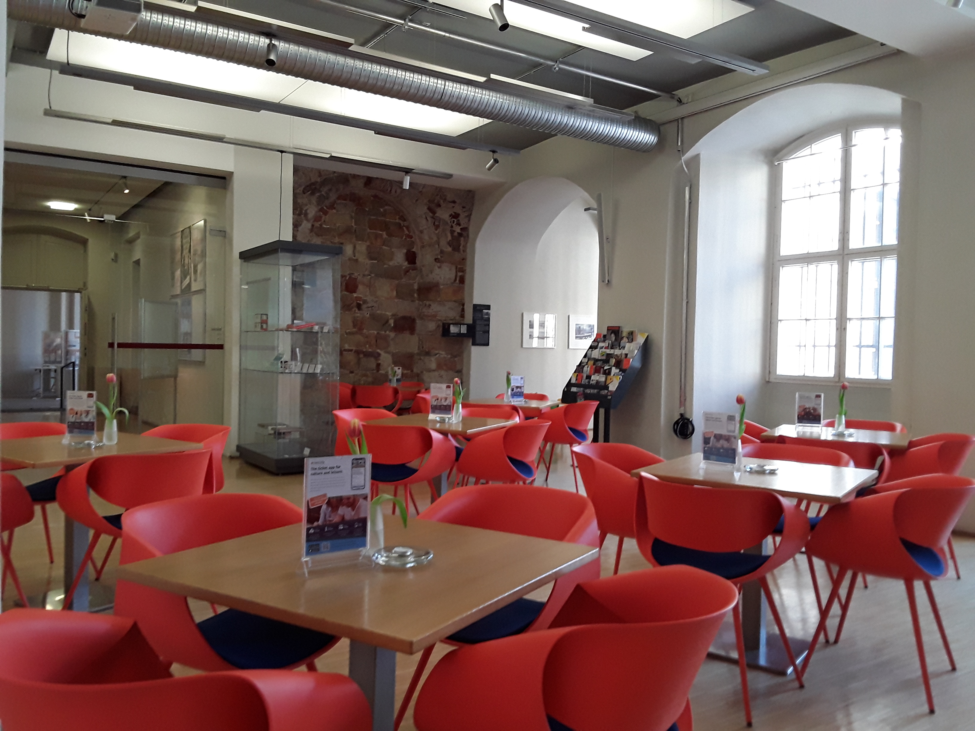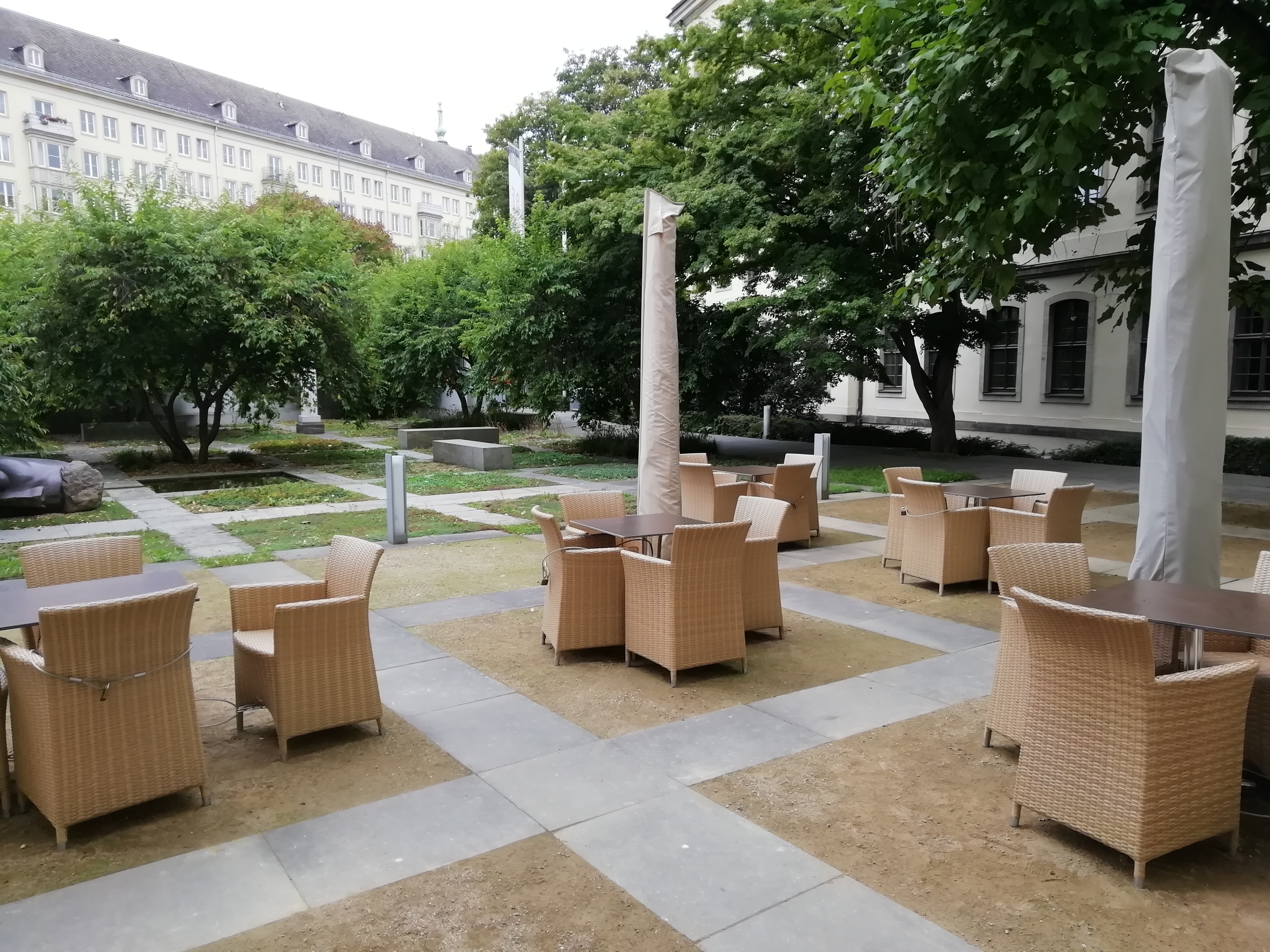 Der Außenbereich ist vom Café erreichbar. Ein weiterer Zugang befindet sich auf der Gewandhausstraße links des Museums.