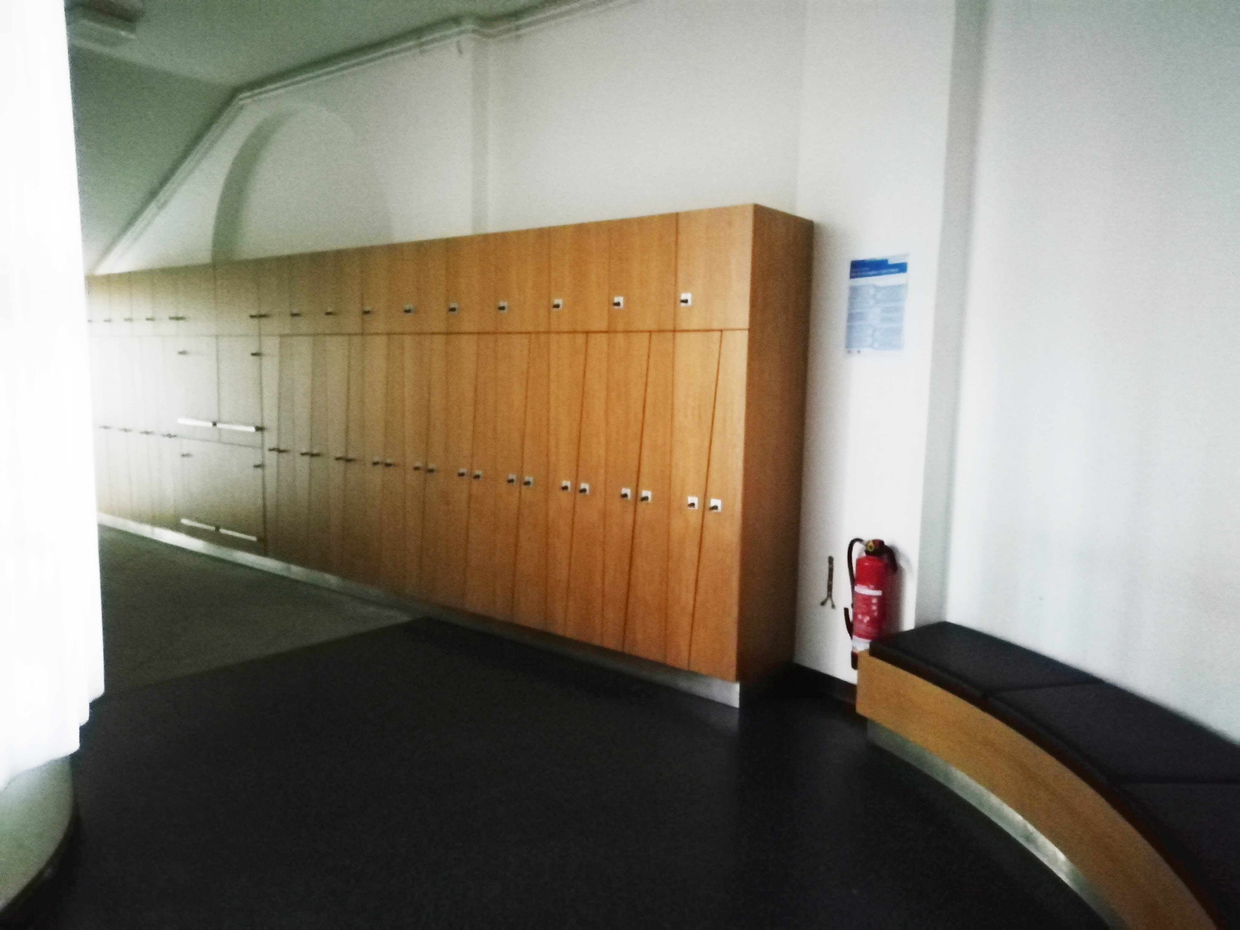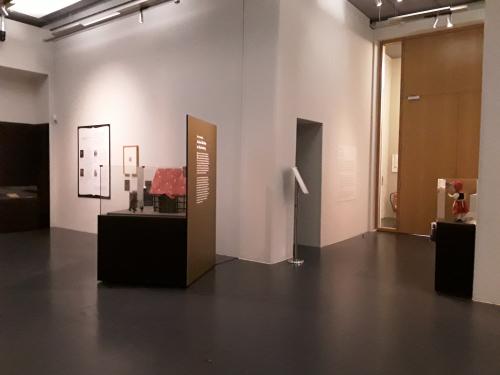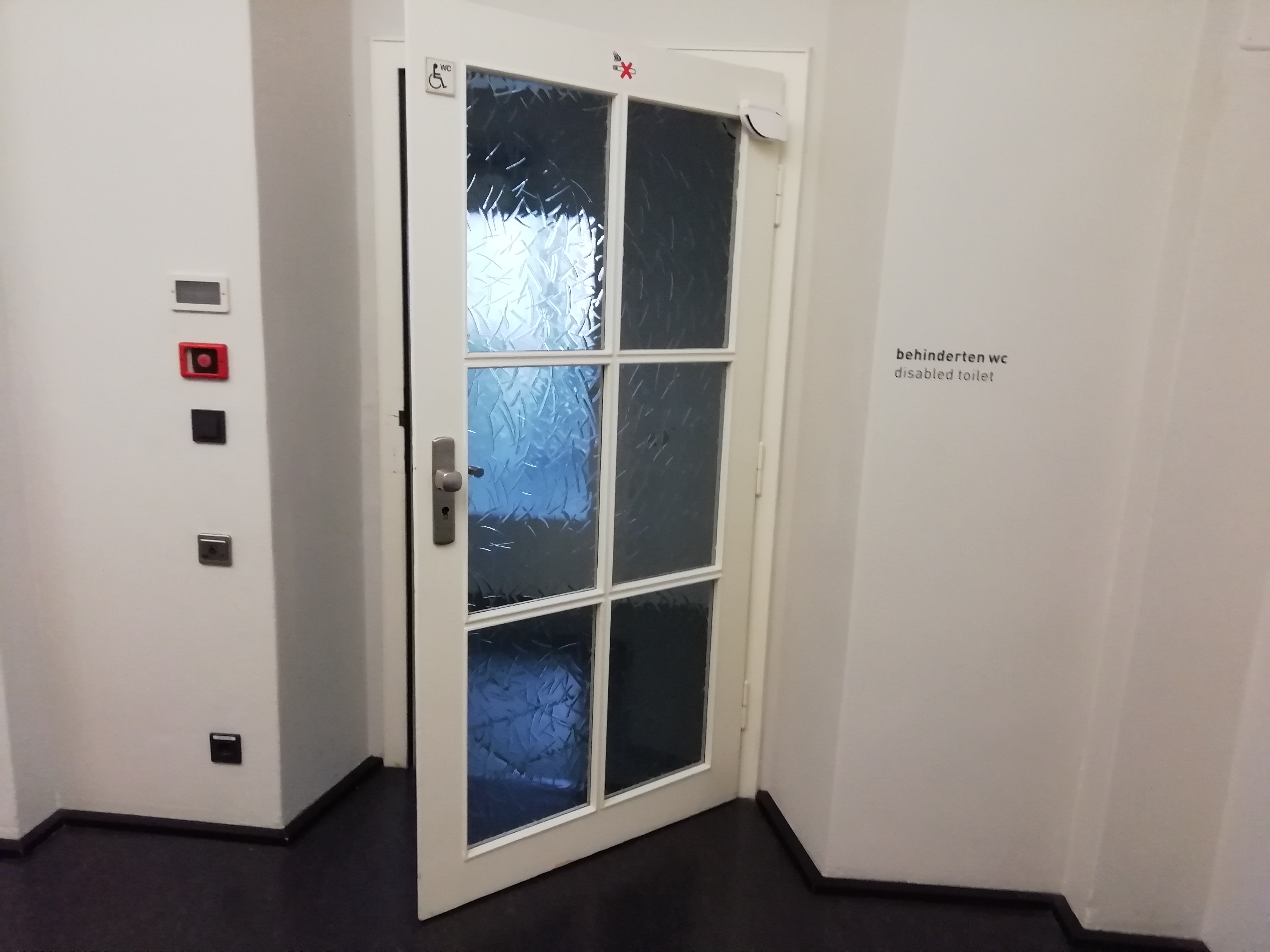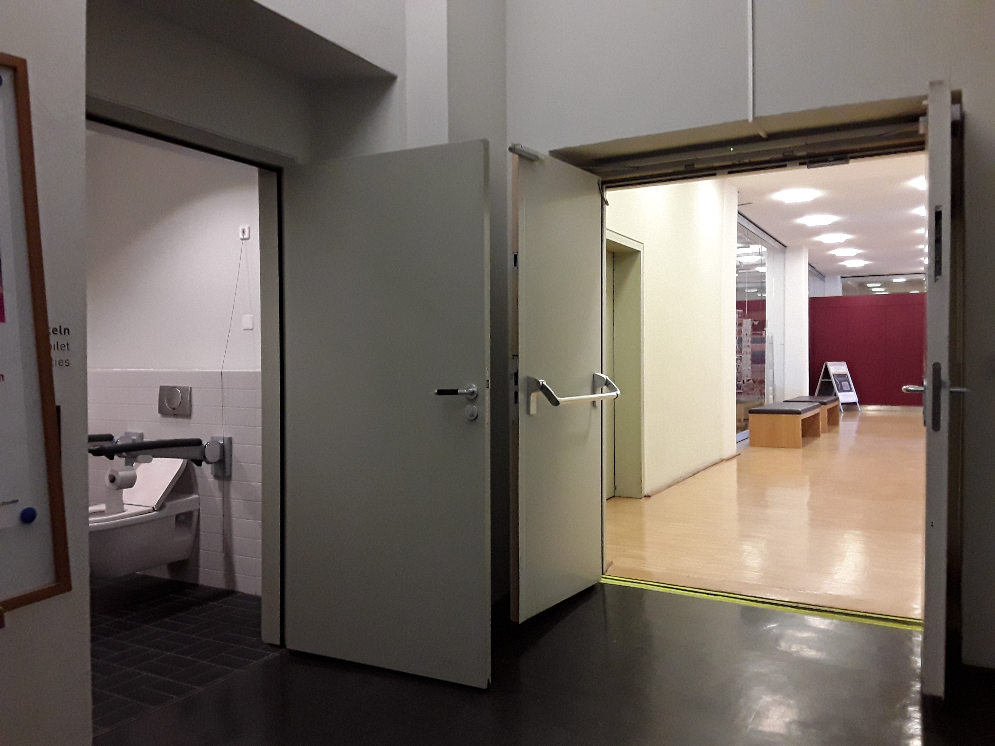 Die Tür vom Ausstellungsraum zur Toilettenanlage.