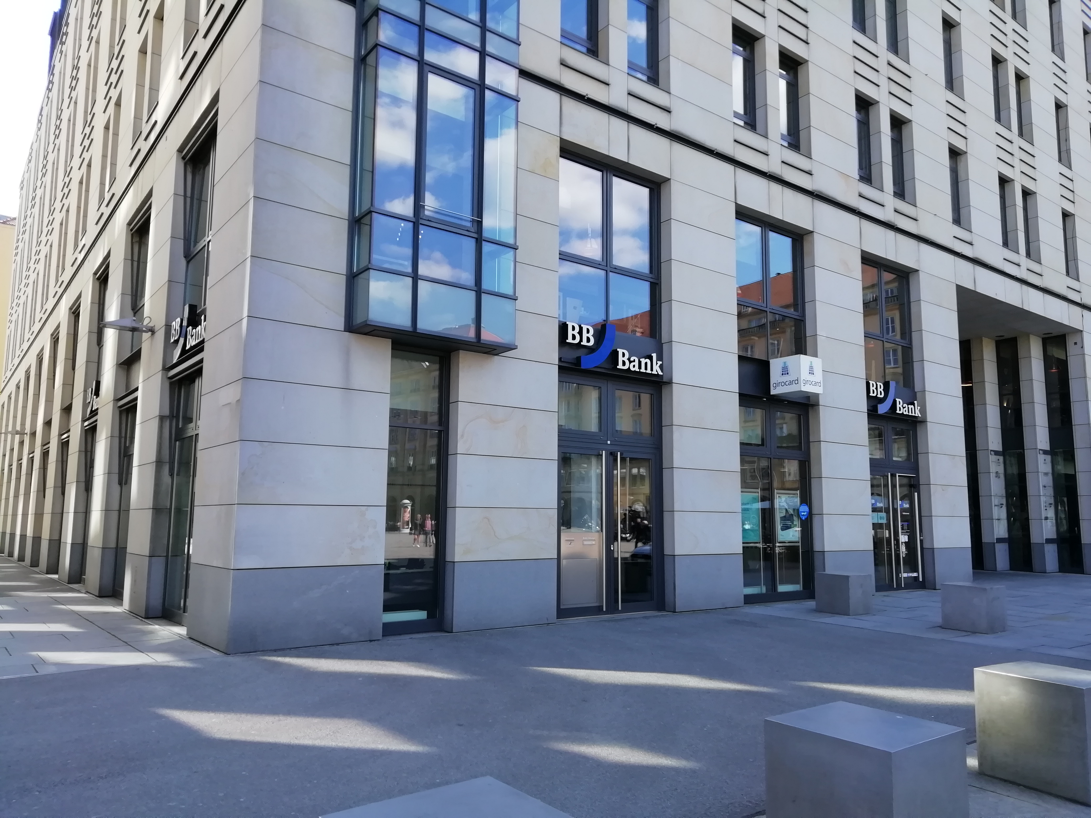 Die Bank befindet sich im Erdgeschoss des Gebäudes.