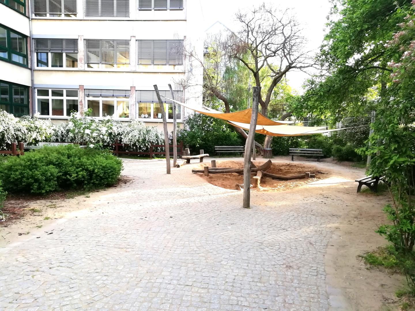 Der Schulhof ist über den Eingang an der Forststraße zugänglich.