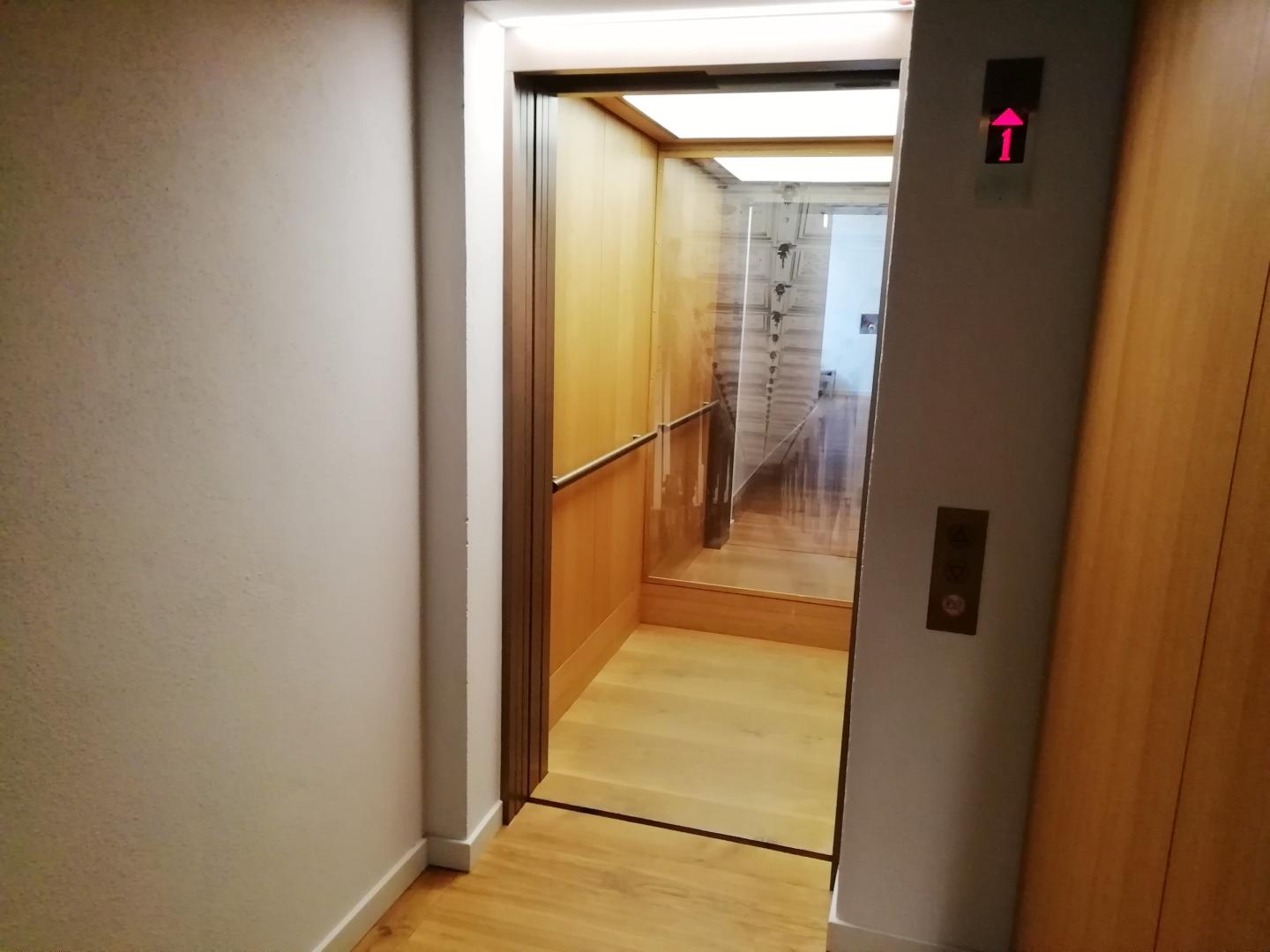 Die Zugangstür nach dem Aufzug hat eine lichte Breite von 62 cm. Diese ist mit einem 2. Flügel erweiterbar.