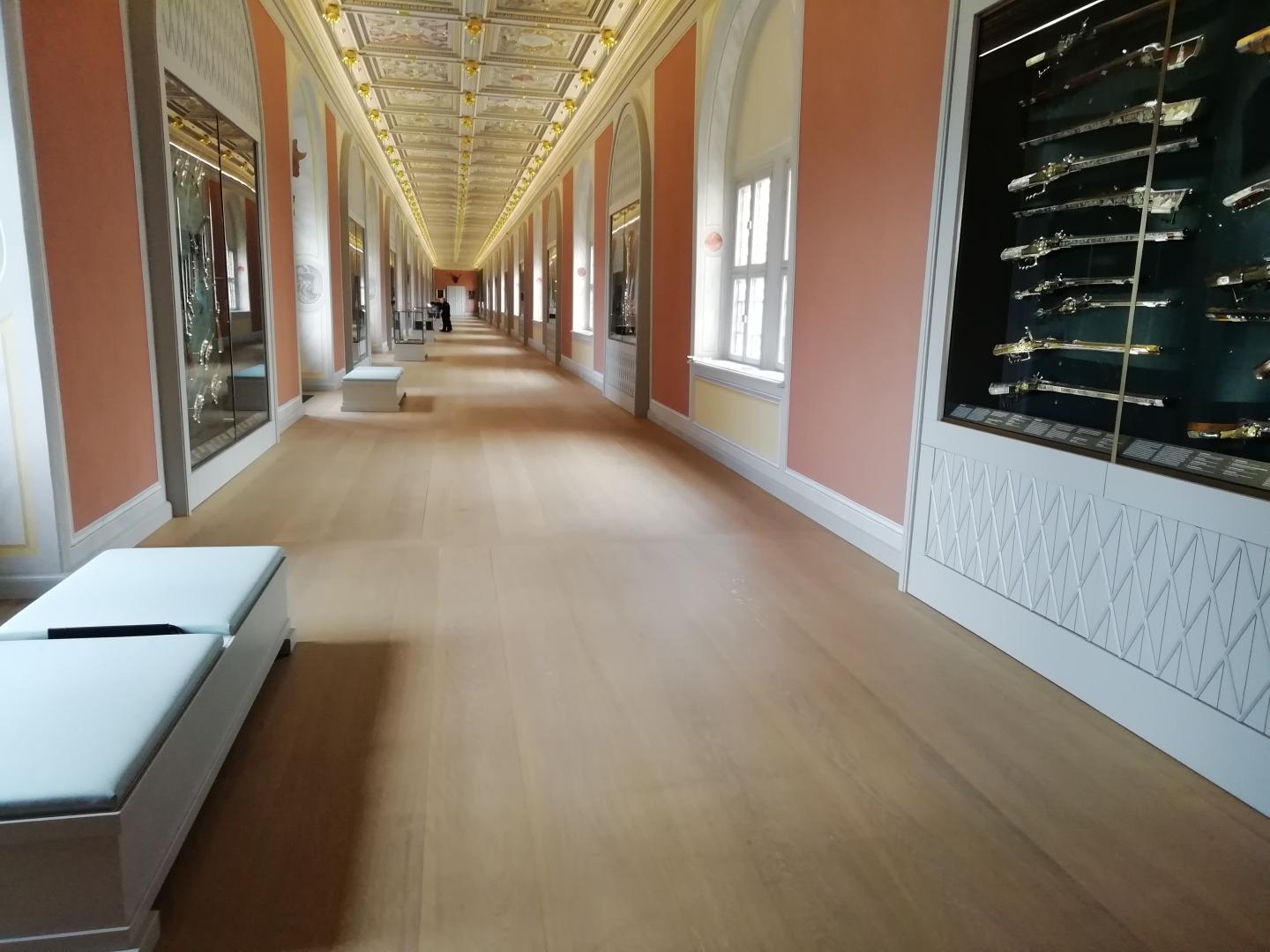 Die Gewehrgalerie befindet sich im Zwischengeschoss von 1. und 2. Obergeschoss. Der Zugang ist über den Renaissanceflügel erreichbar.