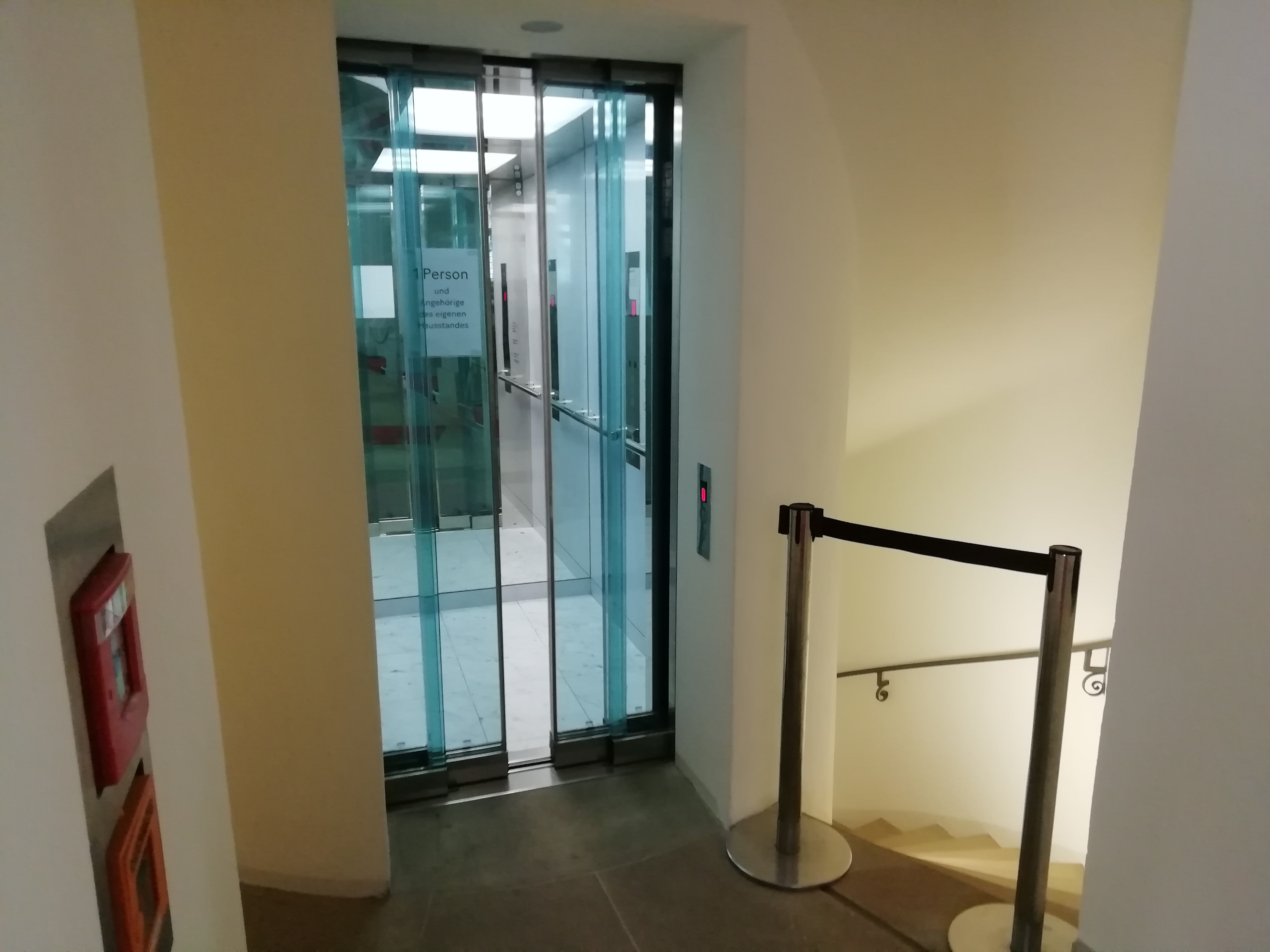 Zugang über Aufzug B - Aufzug zur Gewehrgalerie