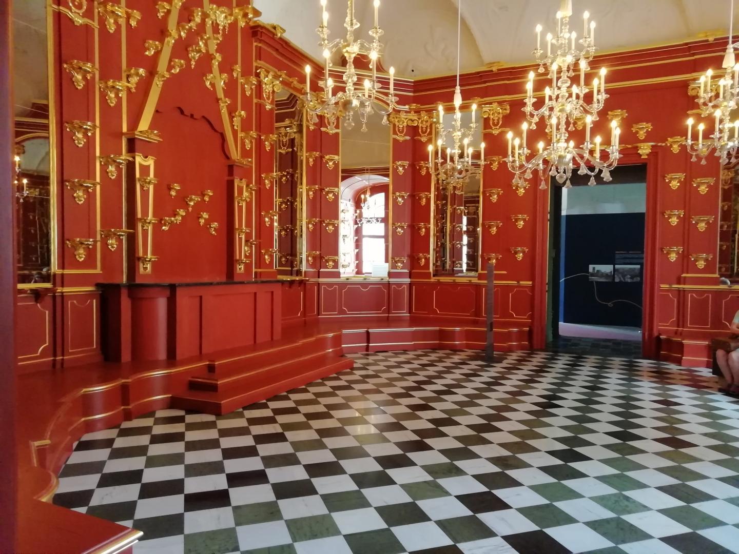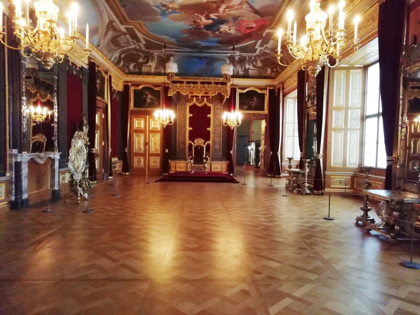 Das Münzkabinett befindet sich im 2. Oberschoss. Ab dem Aufzug gelangen Sie durch den Riesensaal zum Münzkabinett.