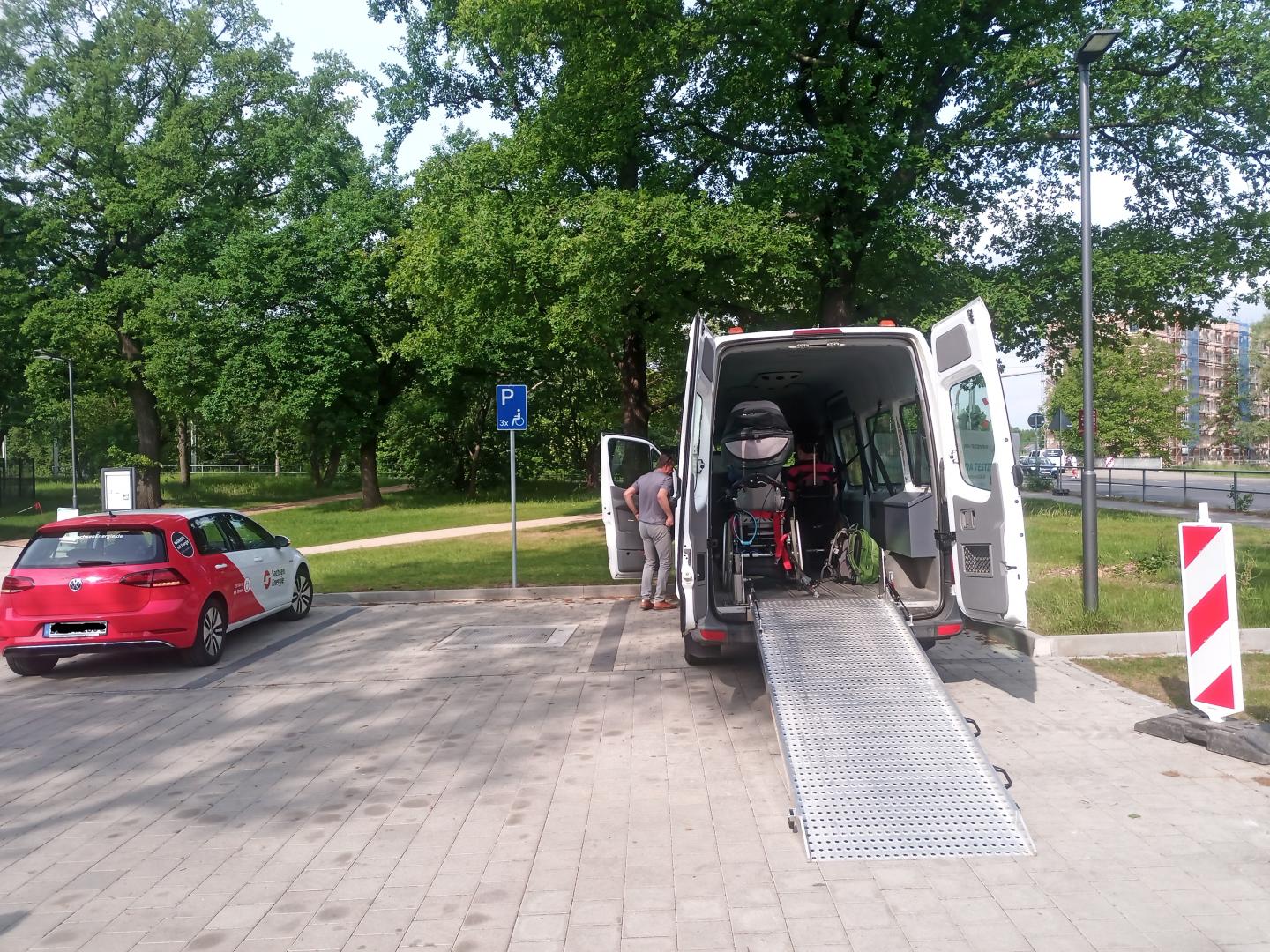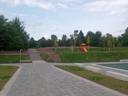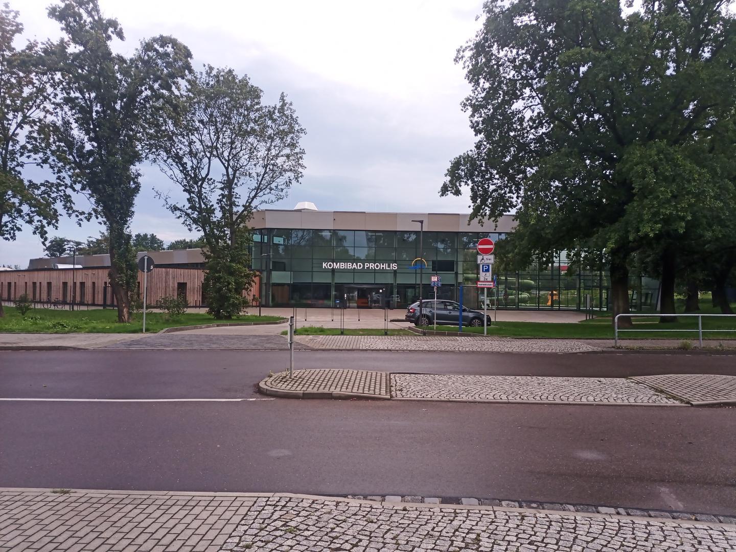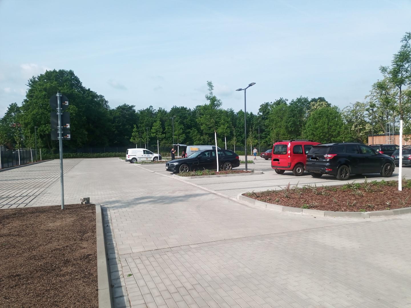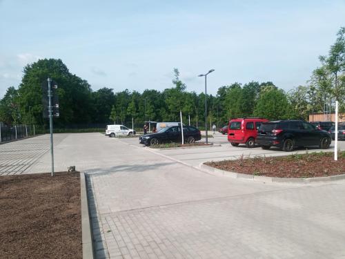 Zufahrt zum Parkplatz ohne Behindertenstellplätze über seitl. Einfahrt Senftenberger Straße. Zufahrt zu den Behindertenstellplätzen am Haupteingang Georg-Plalitzsch-Str.