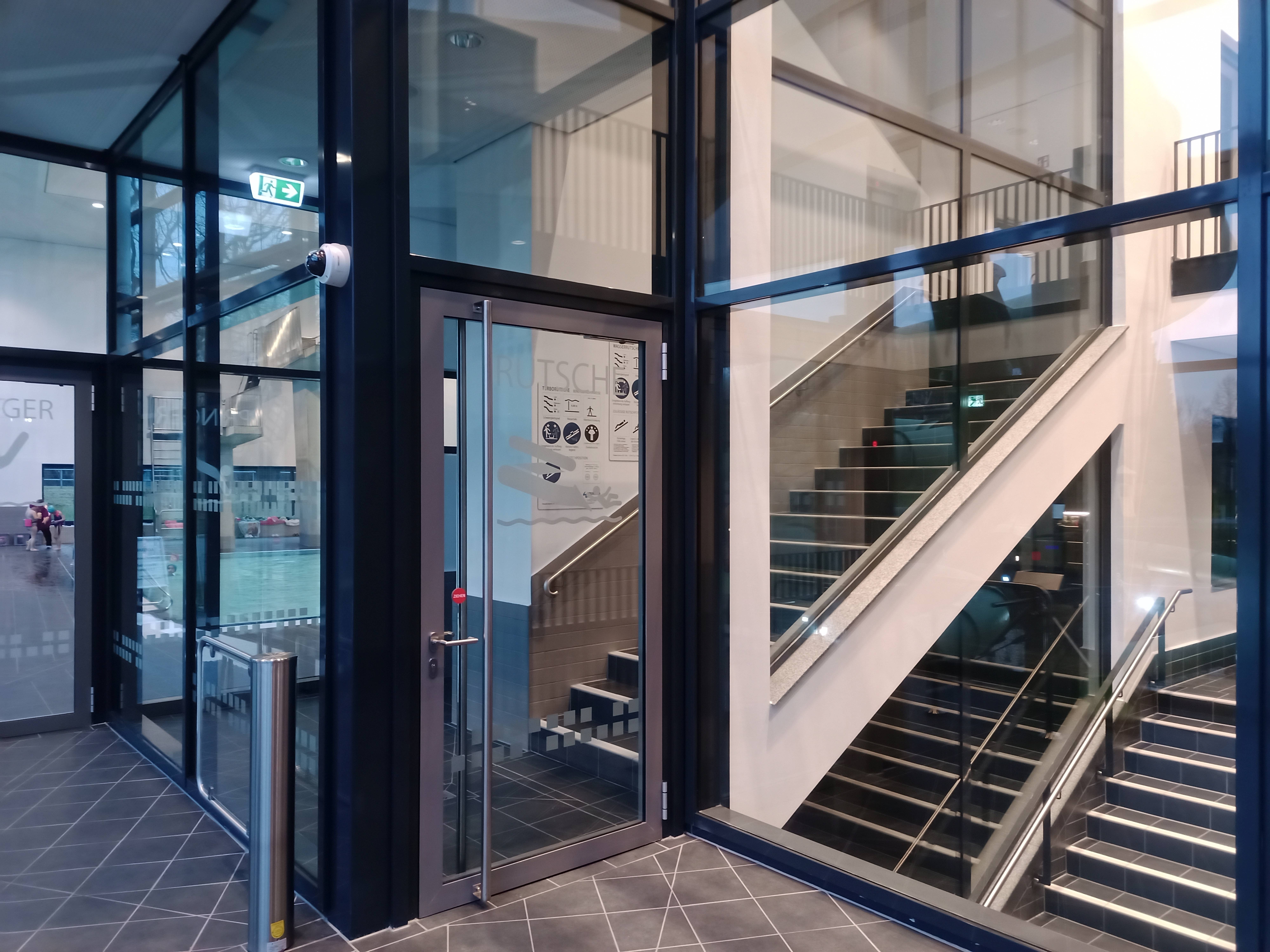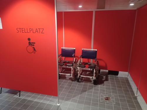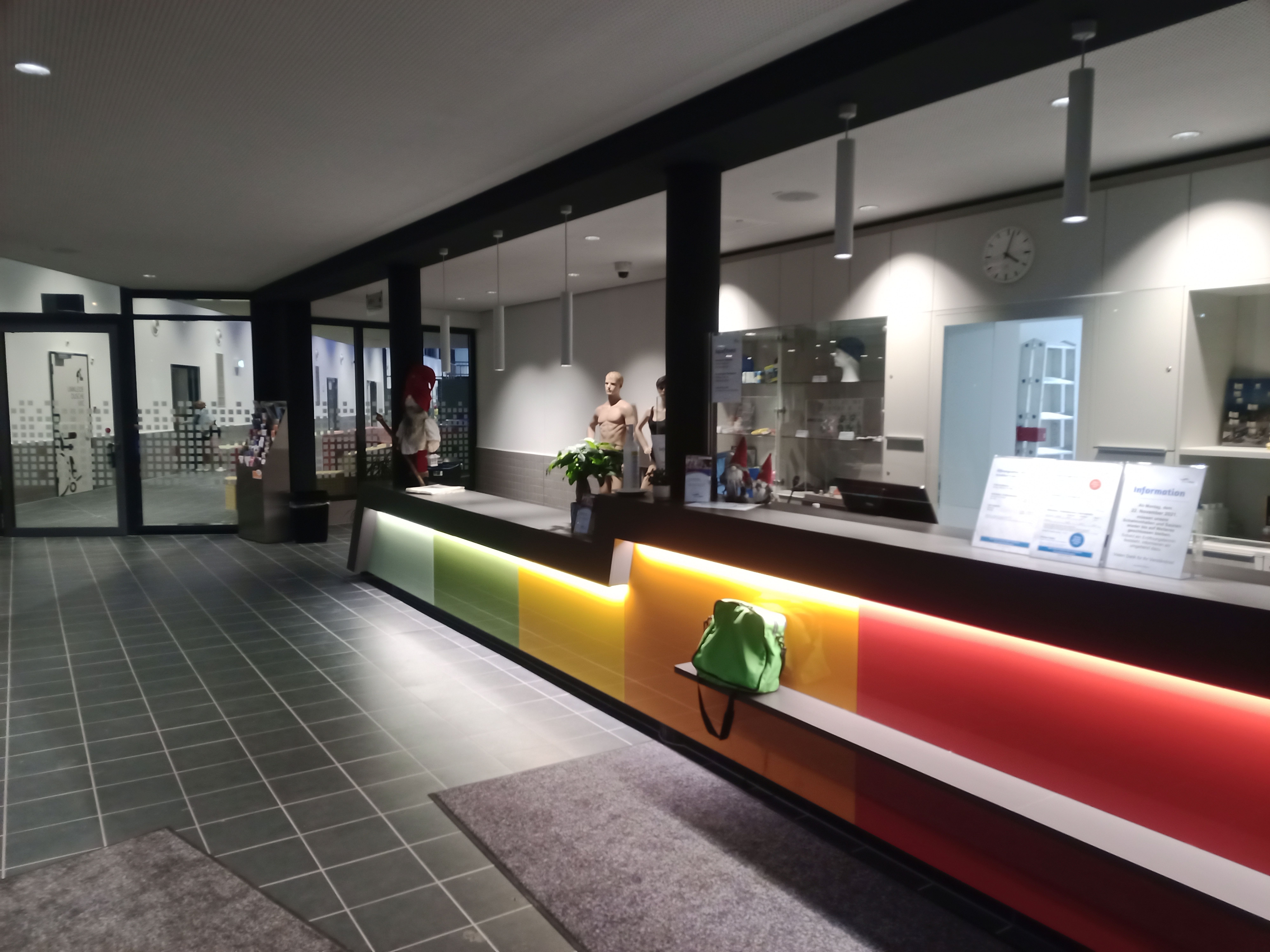 Von der Halle aus ist der Imbiss barrierefrei erreichbar. Vom Freibad aus kann dazu die Treppe mit 9 Stufen oder der Aufzug genutzt werden. Zwischen Aufzug und Imbiss befindet sich eine Tür, die von dieser Seite nicht geöffnet werden kann - bitte an der Kasse melden.