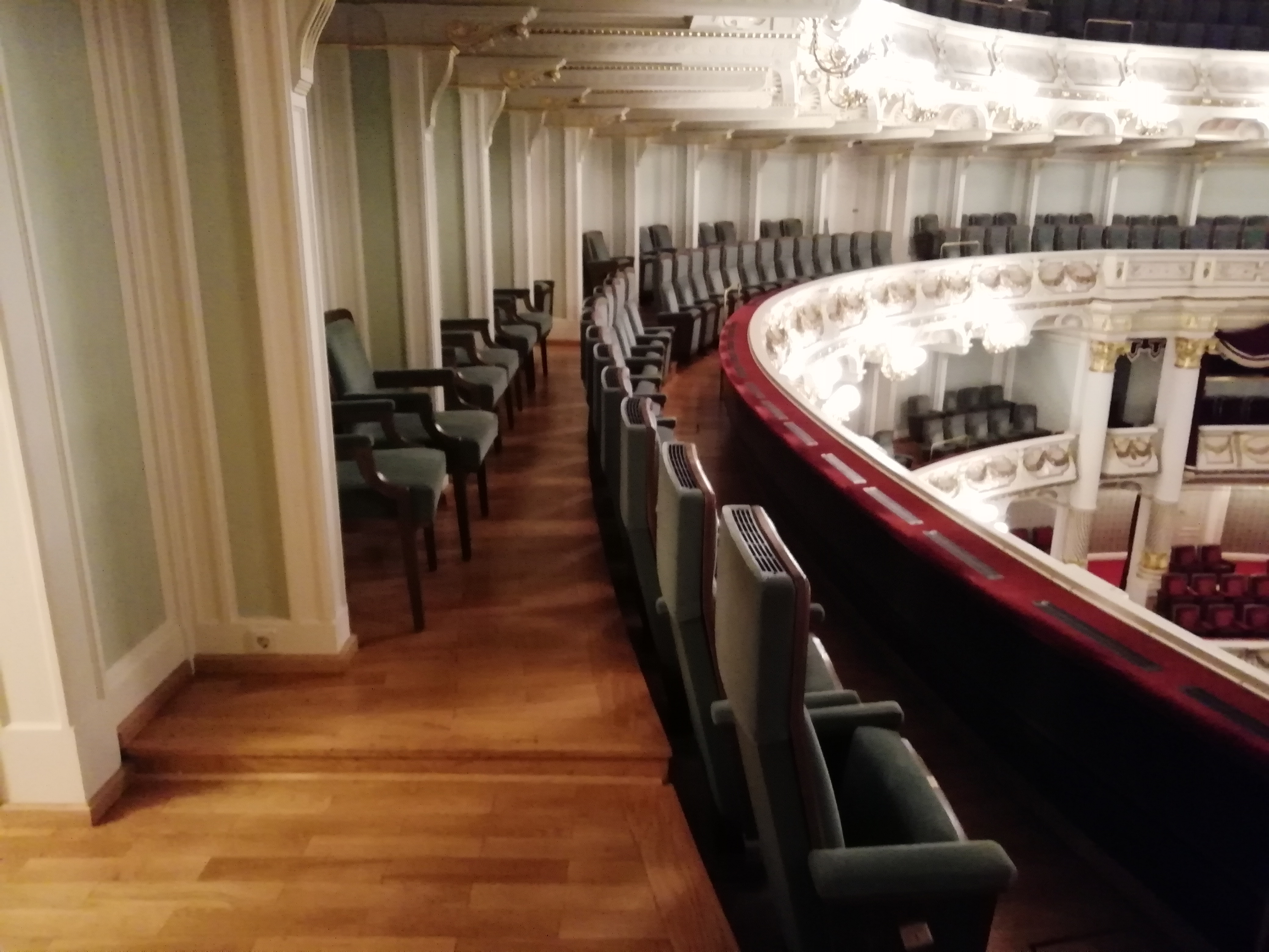 Nutzungsbereich 2. Rang: Die Semperoper ist mit einer induktiven Höranlage ausgestattet. Für die individuelle Versorgung der Schwerhörigen stehen Kopfhörer, eine Induktionsschleife oder ein Induktionsblättchen zur Verfügung. Das Signal wird per Funk übertragen und ist im gesamten Saal mit gleich guter Qualität zu empfangen. Die Geräte können gegen eine Gebühr an der Garderobe ausgeliehen werden, sofern es die Hygieneregeln während der Corona-Pandemie erlauben.