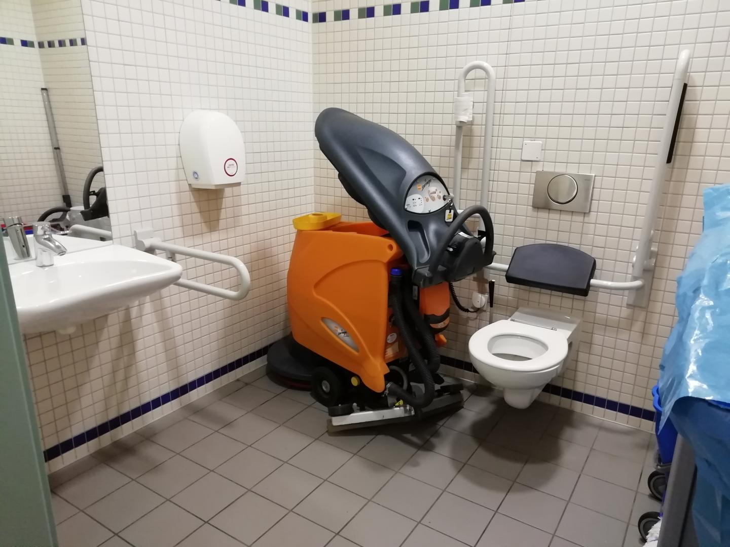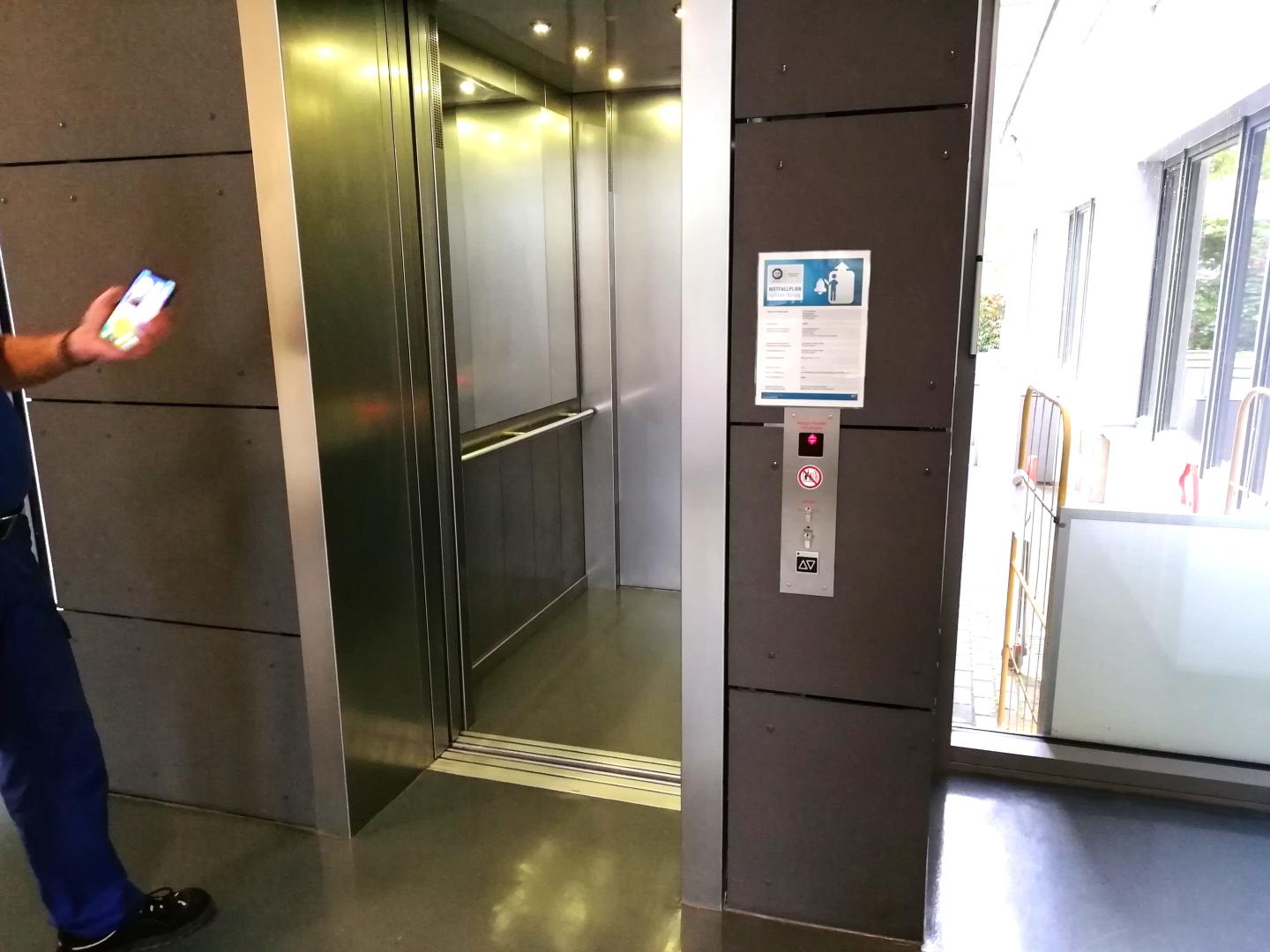 The elevator goes from the basement (gym) to the first floor (school). A special key is required to operate it, which is available from the caretaker and school staff.