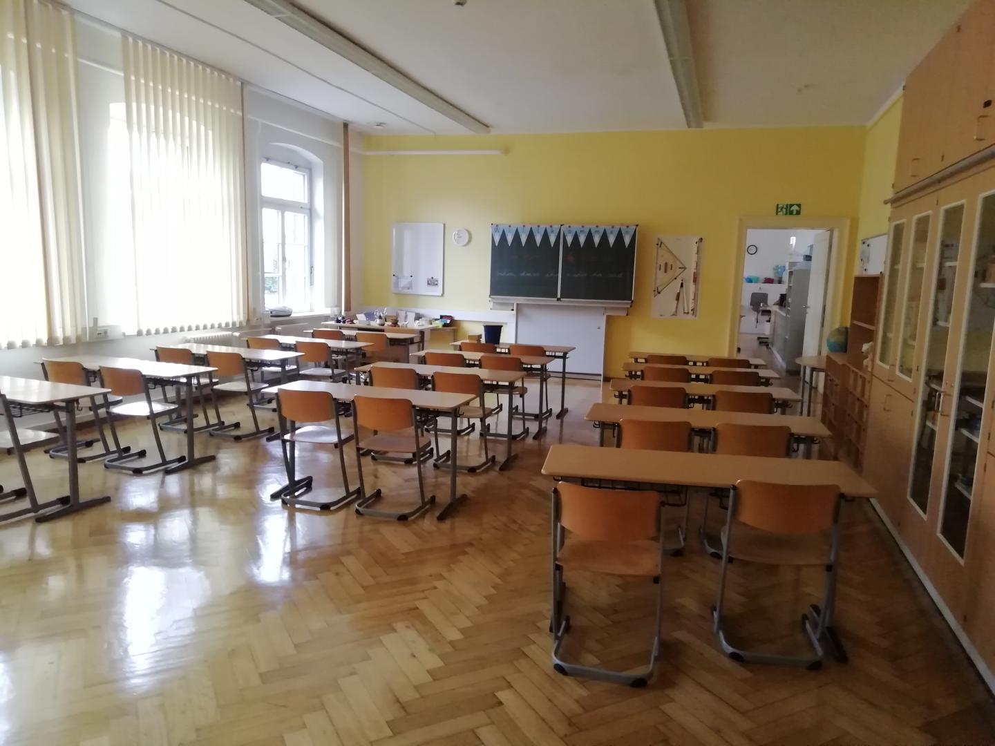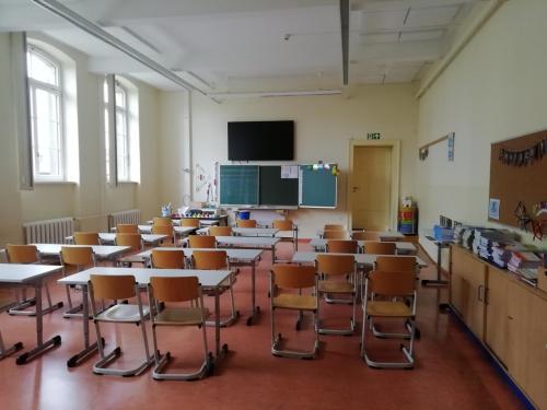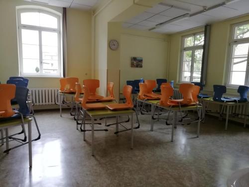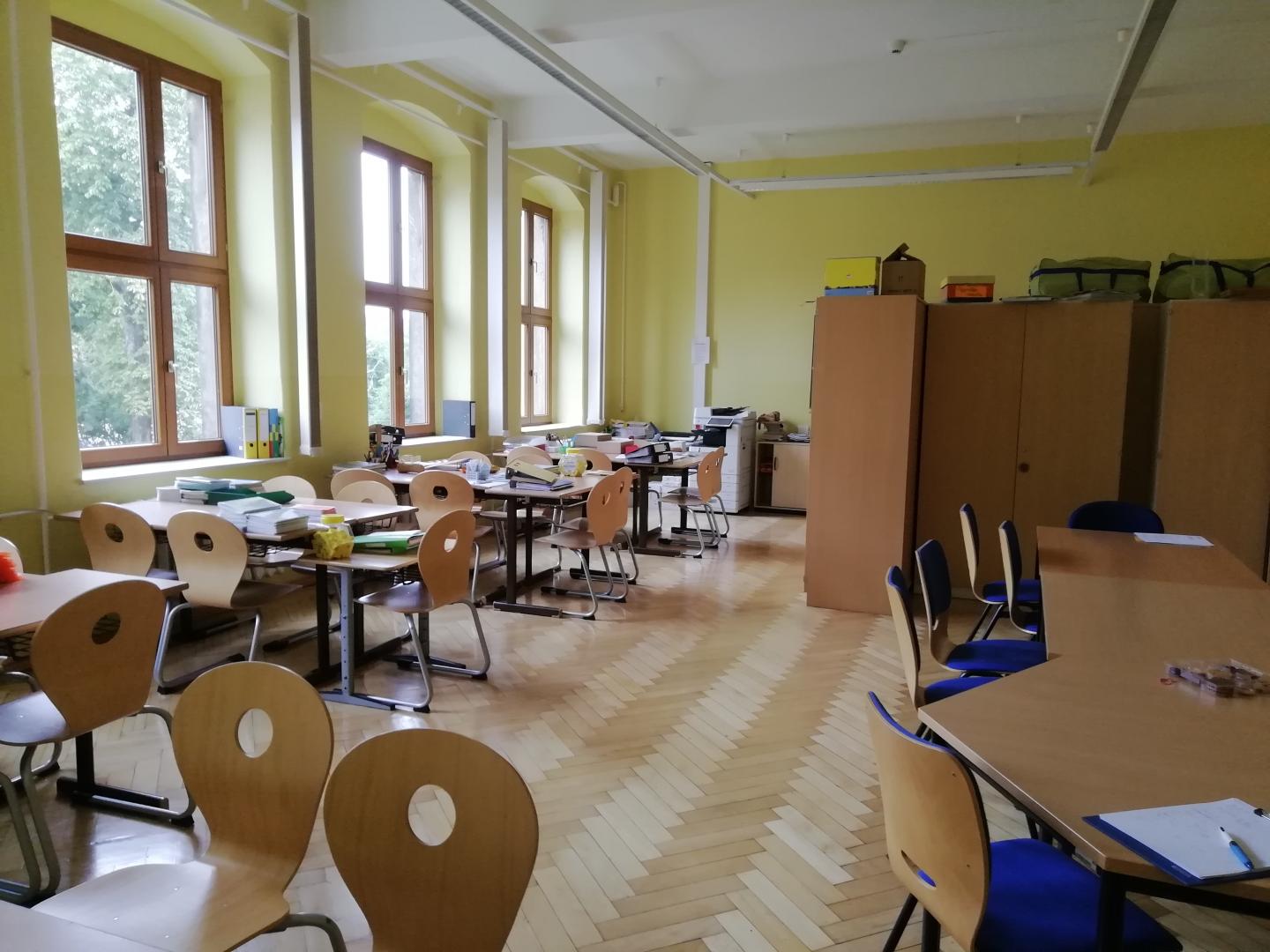 The school consists of house 1 on the right, house 2 on the left and the after-school building.