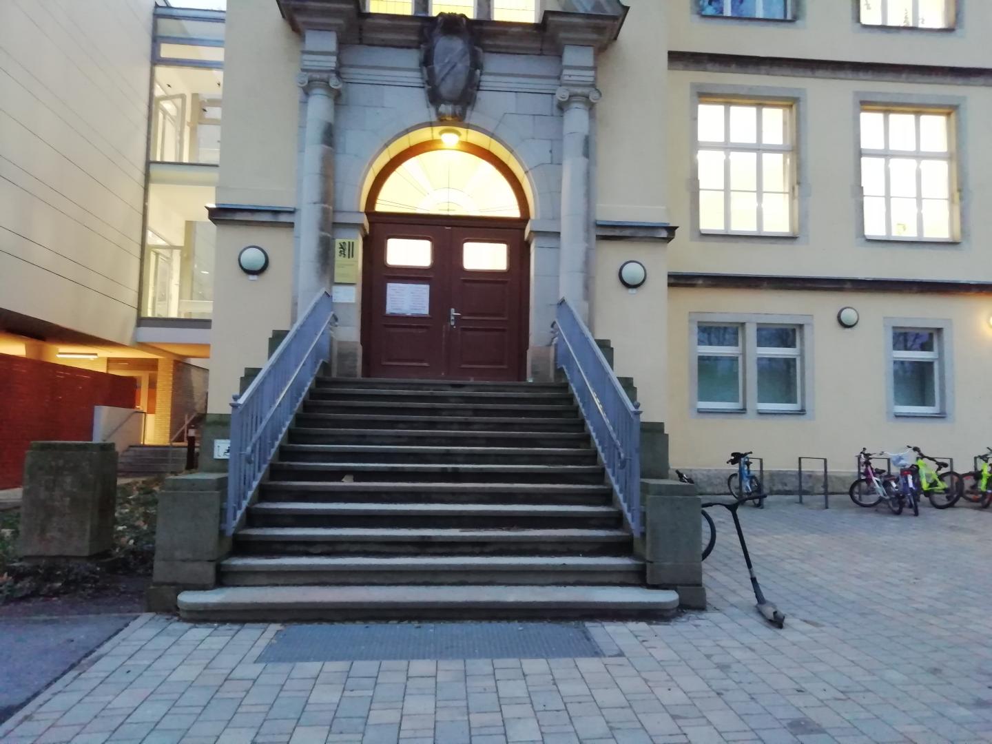 The school consists of an old building with a new building attached and is used by the school and day-care center.