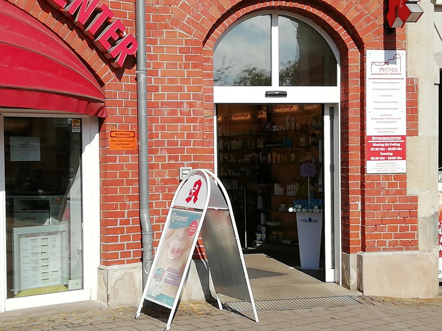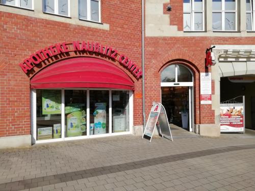 The pharmacy is on the right in front of the main entrance to the Kaufland Naußlitz Center.