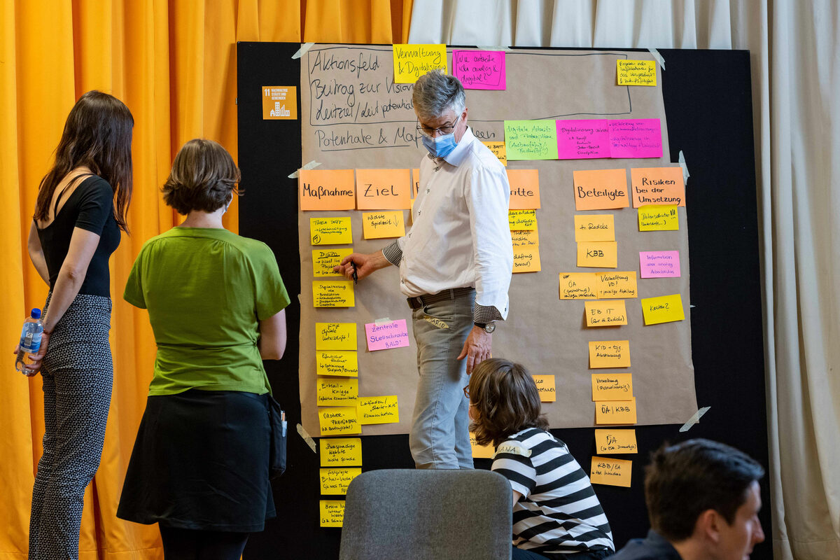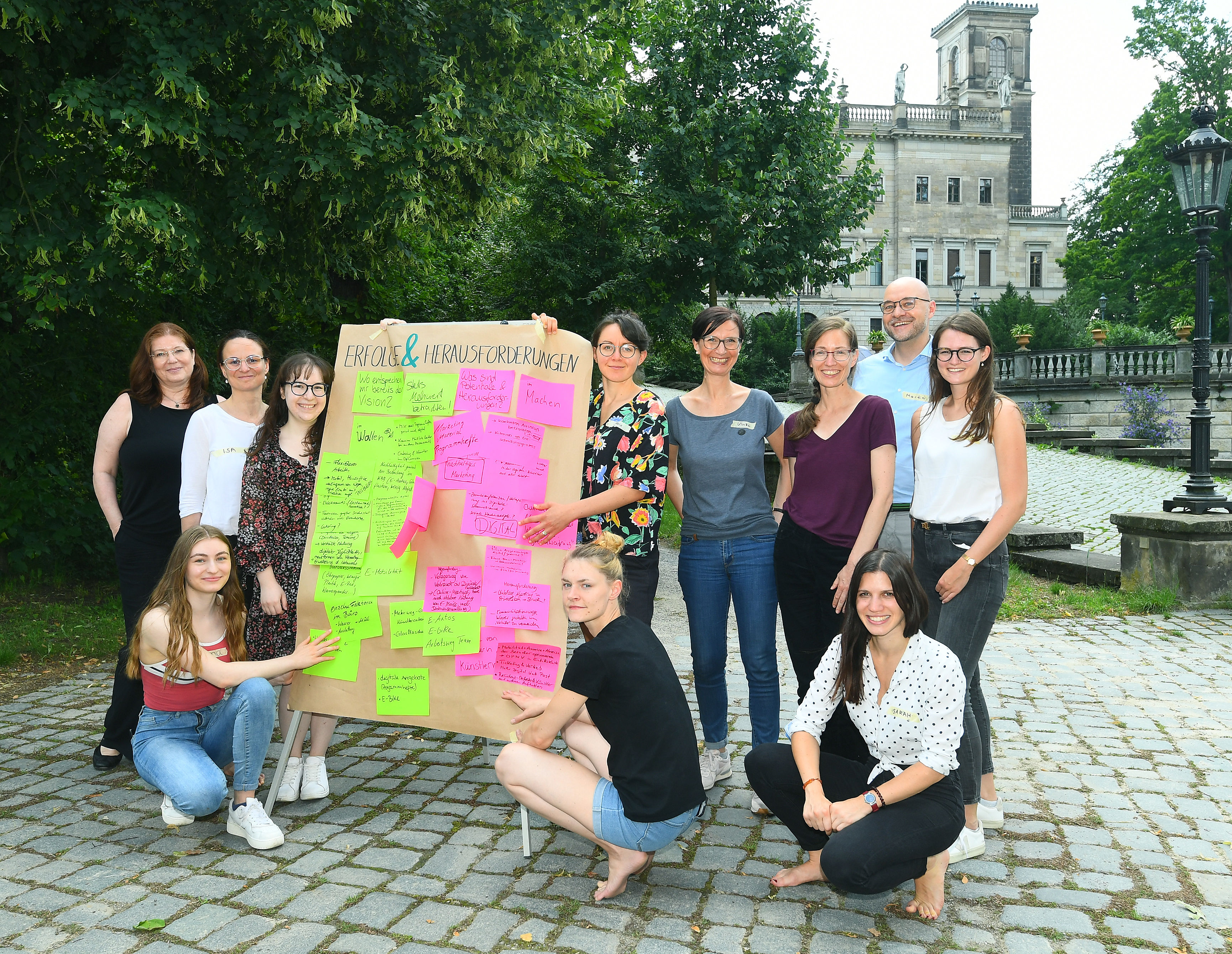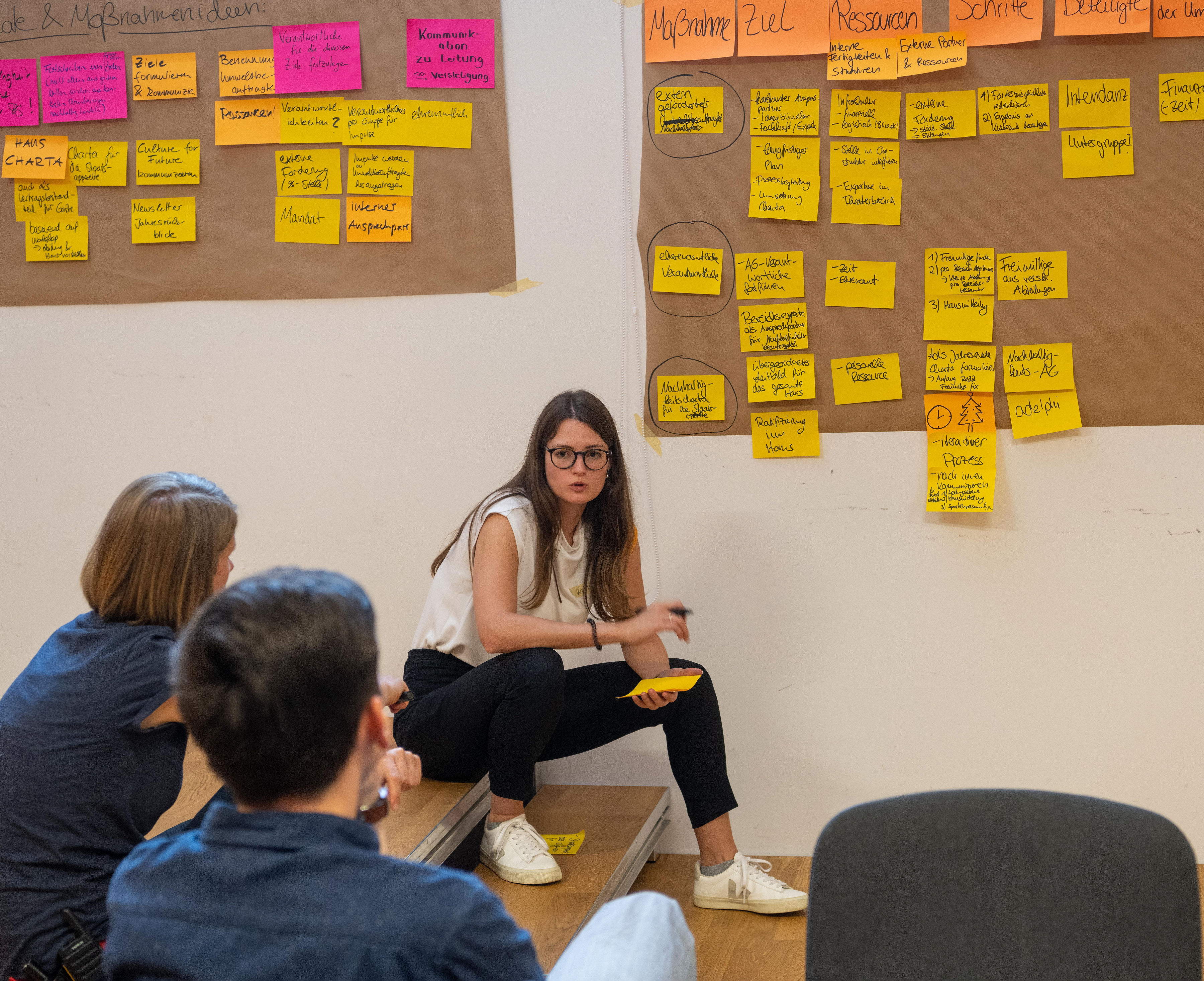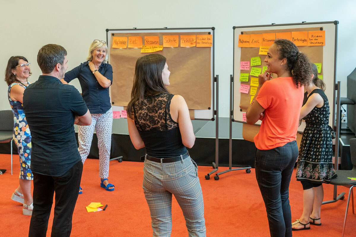 Im ersten Workshop wurde jeweils gemeinsam mit Mitarbeitenden eine Vision von Nachhaltigkeit entwickelt und das Zukunftsbild innerhalb verschiedener Aktionsfelder ausdifferenziert. Für die Erreichung der Leitziele wurden innerhalb Aktionsfelder in einem weiteren Workshop konkrete Maßnahmen erarbeitet und in der abschließenden Veranstaltung deren Umsetzung, Verstetigung und Berichterstattung durch die Entwicklung geeigneter Wirkungsindikatoren gefördert (Co-Creation).