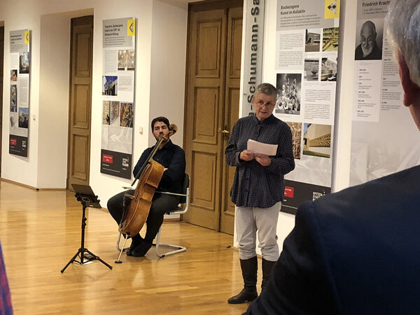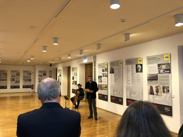 Die von der Stadt Plauen bereit gestellte Wanderausstellung stellt die Dresdner Künstler Karl-Heinz Adler (1927 – 2018) und Friedrich Kracht (1925 – 2007) vor und gibt Einblick in ihr Schaffen. Schautafeln beleuchten die Restaurierung ihres Plauener Wandbildes von der Abnahme der Sandsteinplatten, hinter denen das Kunstwerk jahrelang verborgen war, bis hin zu den aktuellen Restaurierungsarbeiten, und die wechselvolle Geschichte des Neuen Rathauses Plauen seit dessen Wiederaufbau in den 1970er Jahren nach der Kriegszerstörung im 2. Weltkrieg. Dabei nimmt die Ausstellung Bezug auf den Umgang und die zunehmende Wertschätzung der Ostmoderne im Kontext von Denkmalschutz und Denkmalpflege. Ein Beitrag der Wüstenrot Stiftung vermittelt in diesem Zusammenhang das Ziel, einen Beitrag zum Erhalt des kulturellen Erbes allgemein und insbesondere der Ostmoderne zu leisten.