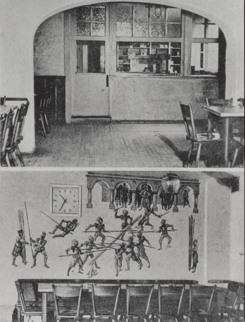Die Polizeilehranstalten waren für die Ausbildung ihrer Lehrkräfte überwiegend selbst verantwortlich. Zu diesem Zweck wurden dem Lehrpersonal militärische Fachzeitschriften und NS-konforme Literatur zur Verfügung gestellt, zu denen auch Schriften von Ernst Jünger zählten. Das Zitat im teilöffentlichen Bereich des Ostflügels ist mit einer transluzenten Scheibe abgedeckt und kontextualisiert.
