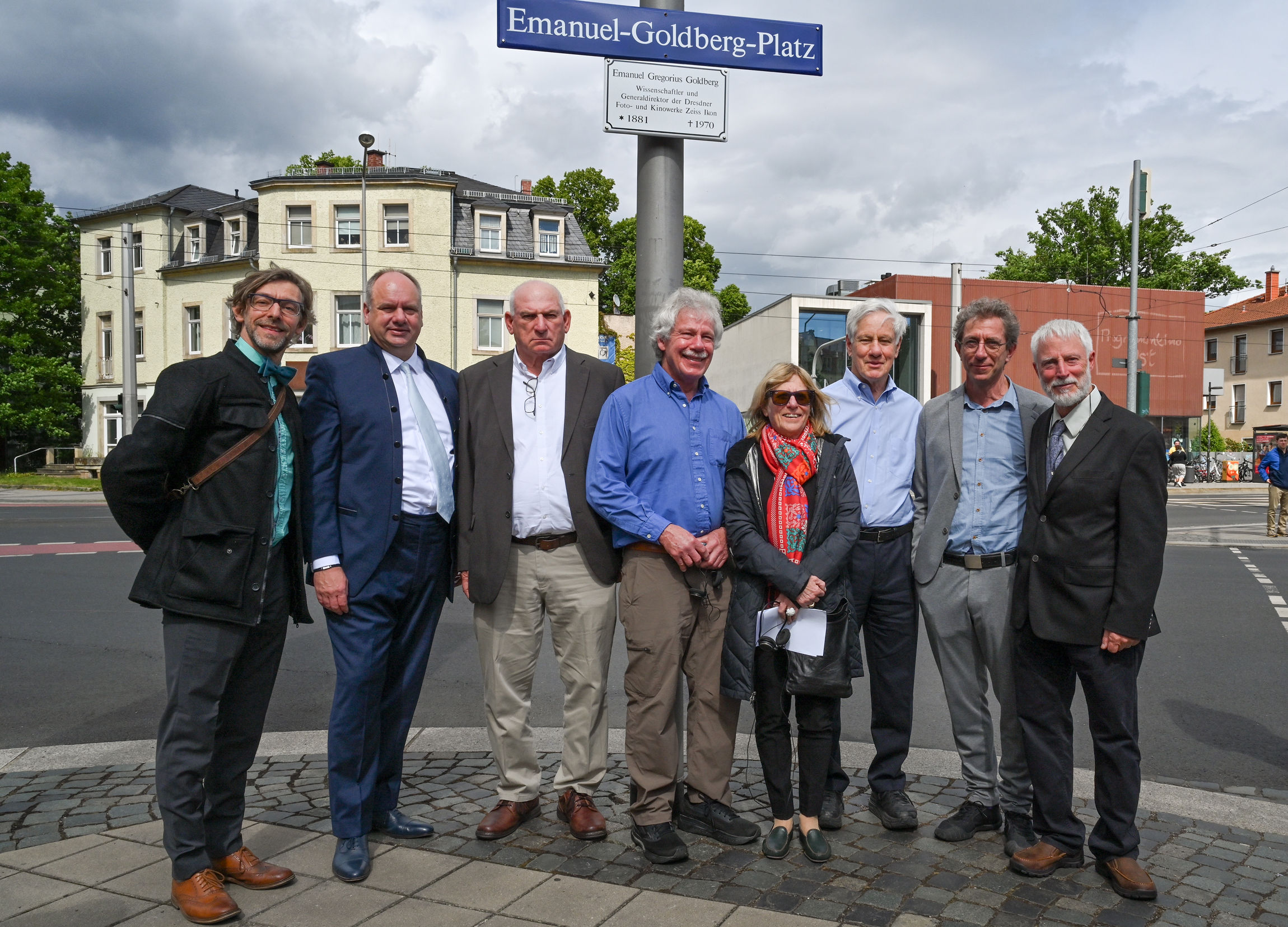Mit einer Festveranstaltung erhielt die Kreuzung Altenberger Straße/Schandauer Straße/Bärensteiner Straße am Sonntag, den 18. Mai 2025 den Namen Emanuel-Goldberg-Platz. Oberbürgermeister Dirk Hilbert enthüllte gegen 14.45 Uhr das Straßenschild in Anwesenheit von Emanuel Goldbergs Nachfahren und der allgemeinen Öffentlichkeit. Mit dieser Platzbenennung ehrt die Landeshauptstadt Dresden Emanuel Goldberg, einen der bedeutendsten Pioniere der modernen Bildtechnik, und erinnert zugleich an einen außergewöhnlichen Wissenschaftler, Unternehmer und Visionär, dessen Lebenswerk lange Zeit in Vergessenheit geraten war.