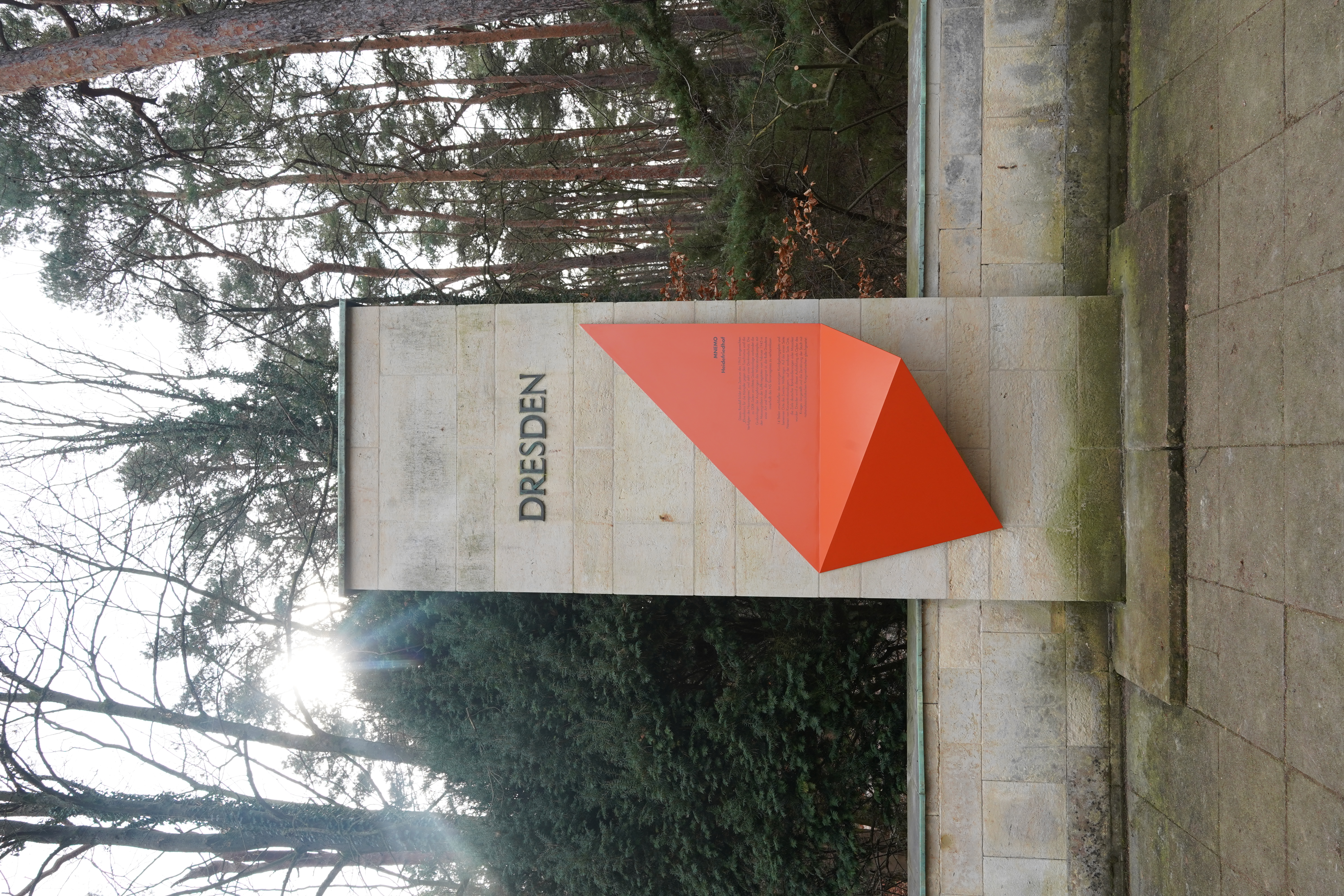 Anlässlich des Gedenkjahres 2025 mit den 80. Jahrestagen der Zerstörung Dresdens im Februar 1945 und dem Ende des Zweiten Weltkrieges ist das historische Gedenkrondell auf dem Heidefriedhof durch eine neue Kontextualisierung in Form einer farbigen Splitterskulptur an der Dresden-Stele ergänzt worden. Vorausgegangen war der Ideenwettbewerb „MNEMO Gedenkareal Dresdner Norden“, den das Amt für Kultur und Denkmalschutz 2022 zur Aufarbeitung und Sichtbarmachung der NS-Diktatur in Dresden auslobte und den das Projektteam um die Architekten Prof. Andrea Wandel, Prof. Wolfgang Lorch, Florian Götze und Thomas Wach (Wandel Lorch Götze Wach GmbH) sowie den Künstler Jochem Hendricks mit seinem Entwurf MNEMO DRESDEN für sich entschied.