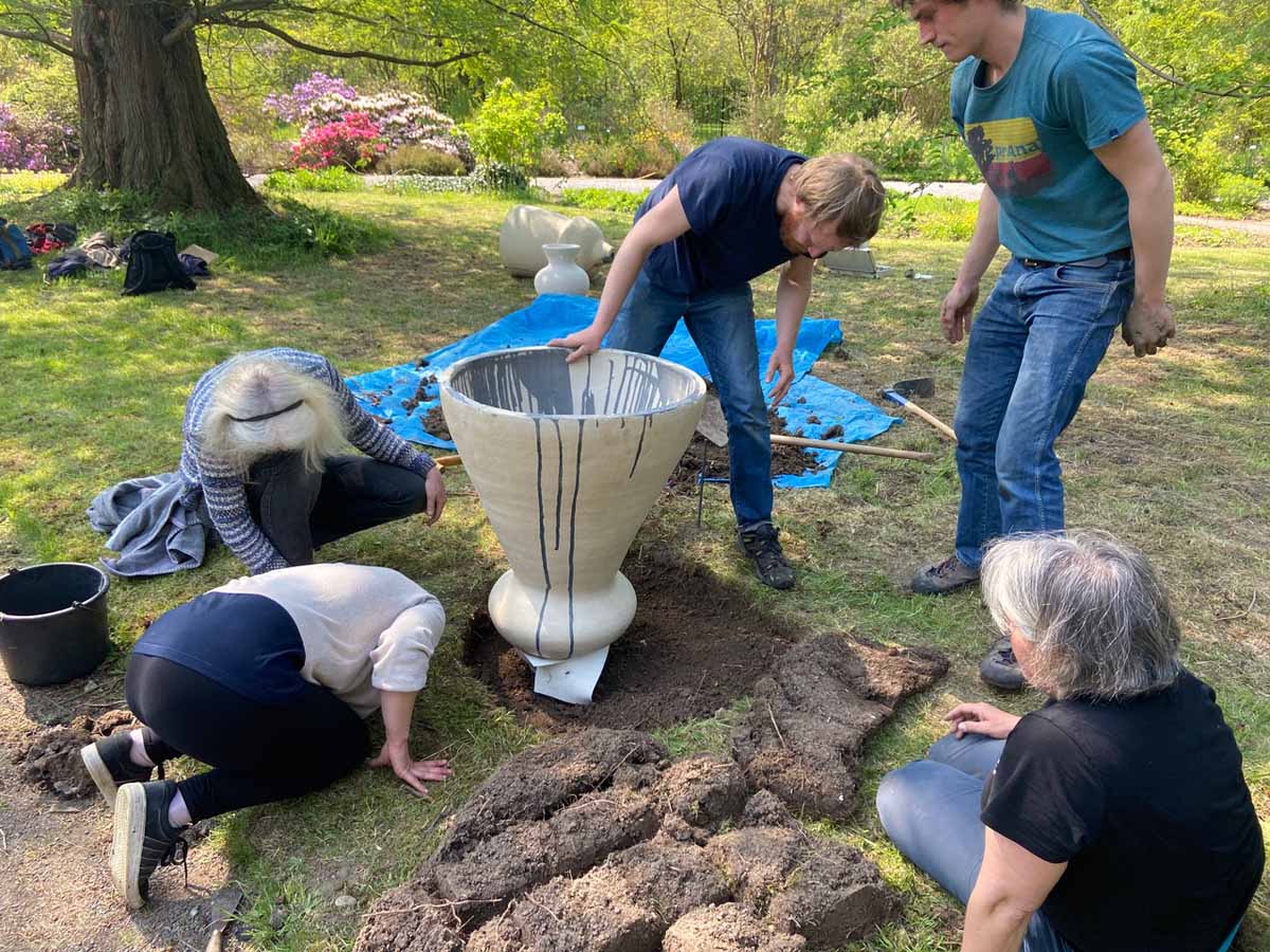 Entstanden ist eine Gruppe von drei Speichergefäßen unterschiedlicher Höhe und Form, die auf dem Gelände des Botanischen Gartens der TU Dresden fest eingegraben wurden.