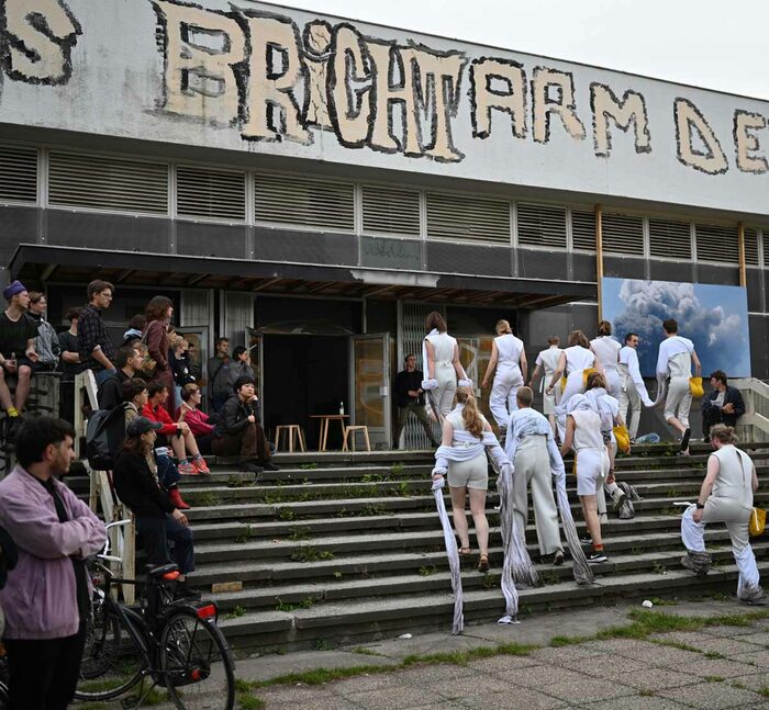 Die Performance entwickelte sich vom Innen- in den Außenraum und wurde an zwei verschiedenen Orten im Stadtraum von Dresden gezeigt: