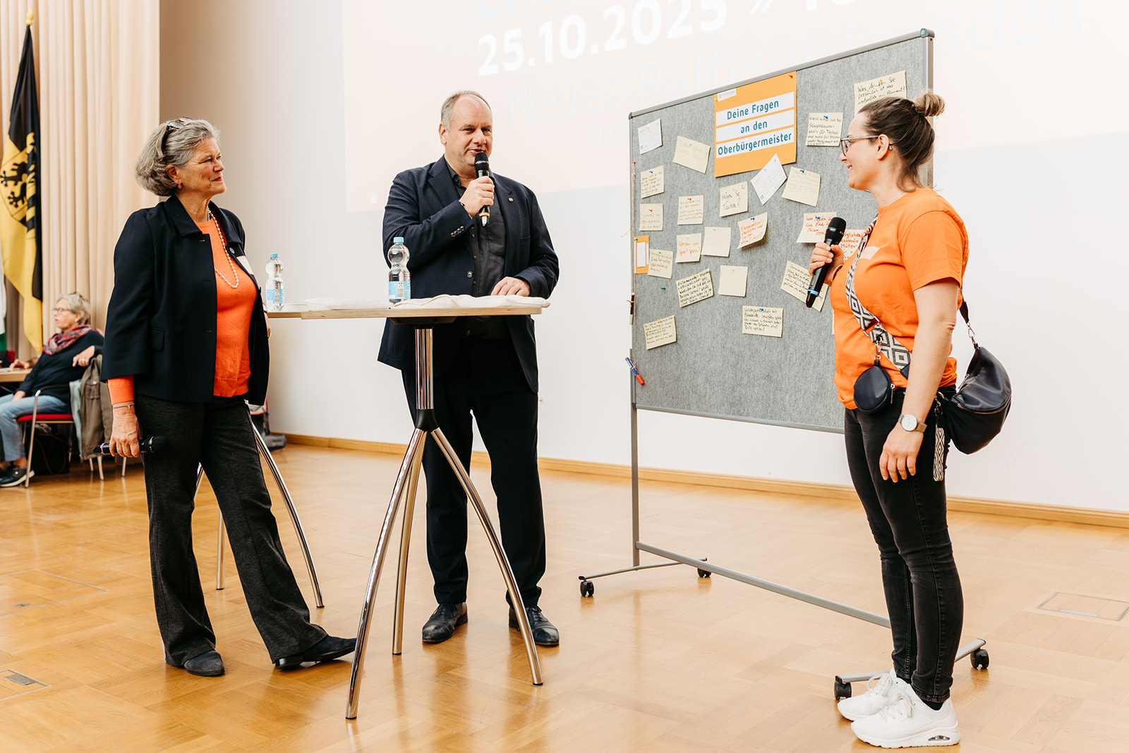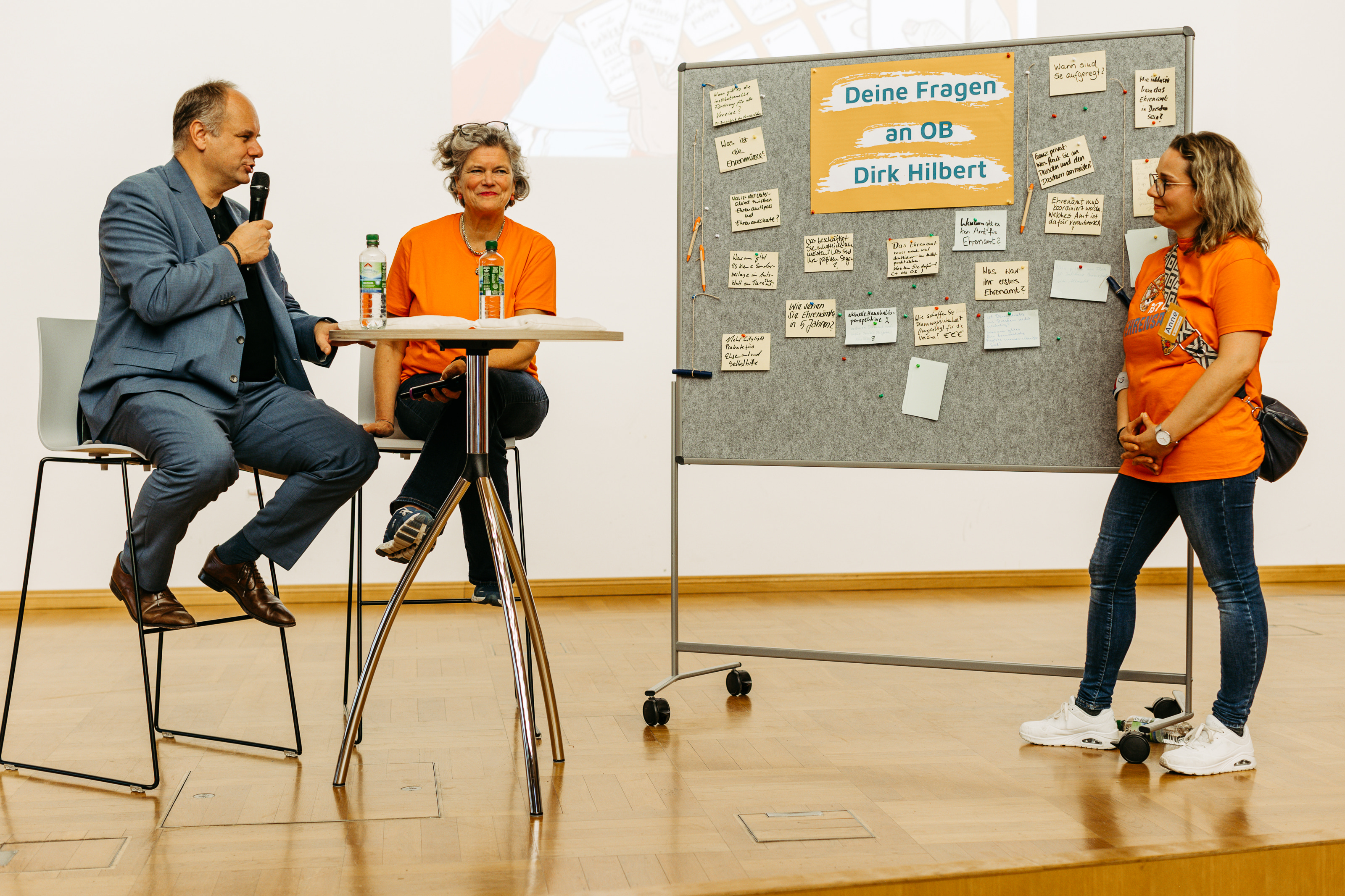 Auch Oberbürgermeister Dirk Hilbert besuchte wie im vergangenen Jahr die Ehrenamtsbörse und tauschte sich mit Vertreterinnen und Vertretern der Dresden Organisationen aus. Im Anschluss beantwortete er in einer Fragerunde mit Katrin Sachs, Geschäftsführerin der Bürgerstiftung Dresden, gesammelten Fragen aus dem Publikum auf der Bühne des Plenarsaals. Davor und danach gab es auf der Bühne ein buntes Programm an Tanzperformances zu erleben und die museumsKÜCHE übernahm die gastronomische Versorgung.