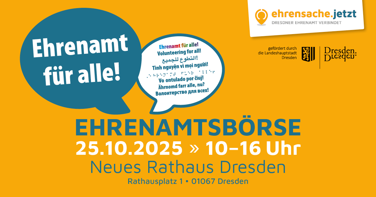 Die Dresdner Ehrenamtsbörse 2025 wurde von der Freiwilligenagentur ehrensache.jetzt bei der Bürgerstiftung Dresden mit Unterstützung der Landeshauptstadt Dresden zum fünften Mal organisiert.
