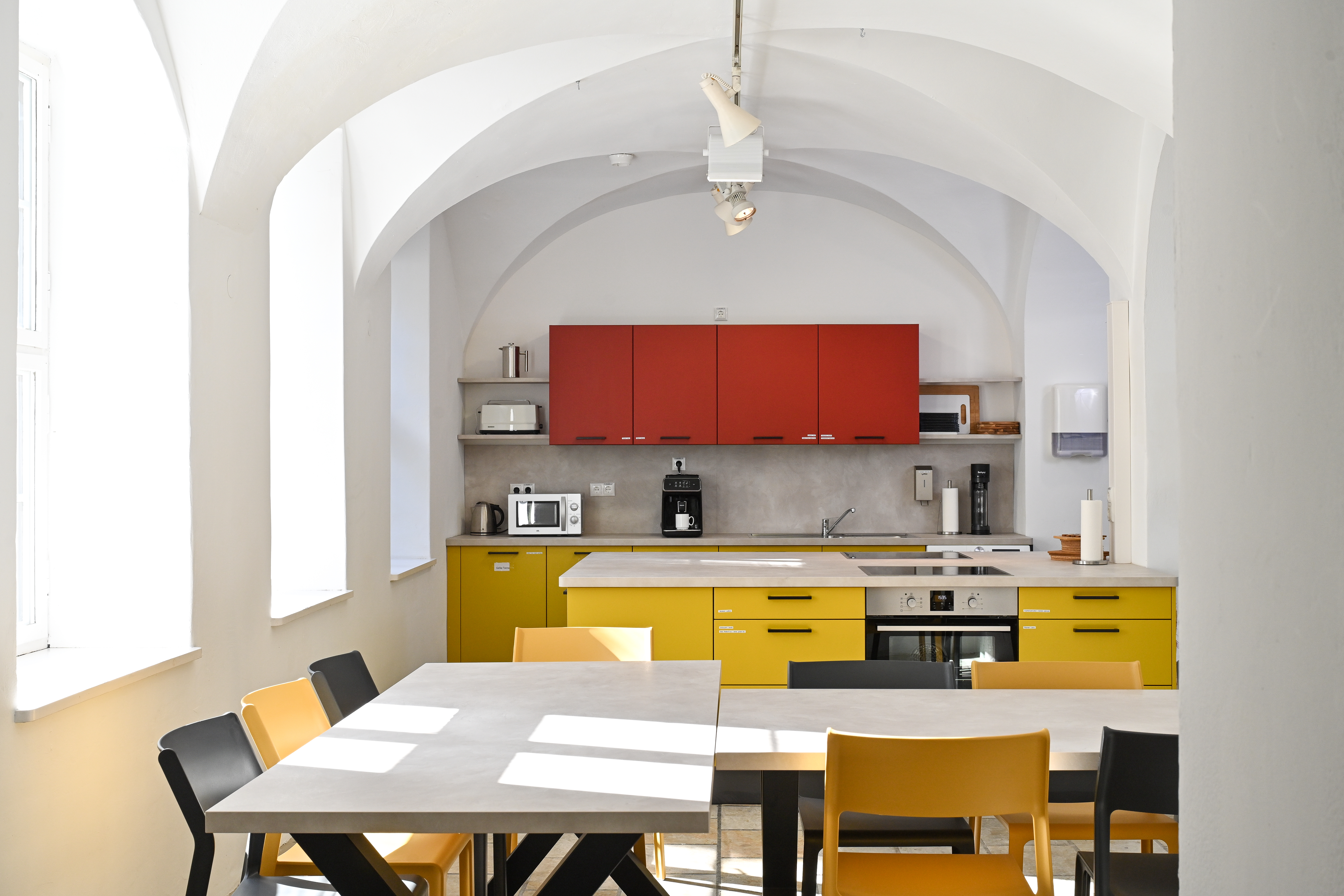 Das Gebäude hat kleine und große Räume, die sich für Workshops, Meetings oder kulturelle Veranstaltungen eignen. Eine Gemeinschaftsküche und ein Begegnungscafé laden in entspannter Atmosphäre zum Austausch ein. Es gibt auch einen Raum der Stille, der für religiöse oder interreligiöse Veranstaltungen genutzt werden kann.