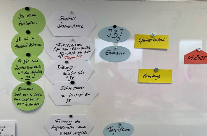 Die Fortschreibung des Fachplans Asyl und Integration startete mit dem bewährten Beteiligungsverfahren in Zusammenarbeit mit behördlichen, freien, zivilgesellschaftlichen und politischen Akteuren. Der Prozess startete am 29. Oktober 2024 mit der Auftaktveranstaltung „Integrationsforum Asyl und Flucht“ und darauf aufbauend wurden vier themenspezifische Workshops durchgeführt. Nun schließt sich die Auswertung der Workshops an und damit die Einarbeitung der Ideen und Impulse in die Fortschreibung des Fachplans Asyl. Mit Vorlage des Entwurfs des Fachplans freuen wir uns, alle Beteiligten wieder zu einer Beteiligungsveranstaltung begrüßen zu dürfen.