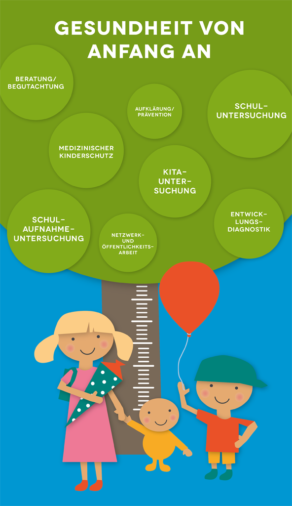 Der Kinder- und Jugendärztliche Dienst (KJÄD) des Gesundheitsamtes bietet Beratung und Unterstützung bei gesundheitlichen, sozialmedizinischen oder pflegerischen Fragestellungen von Kindern und Jugendlichen.