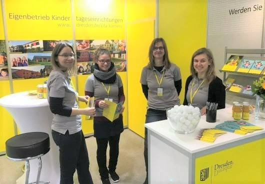 Der Eigenbetrieb Kindertageseinrichtungen nimmt regelmäßig an der Bildungs- und Jobmessen teil. Er ist auch regelmäßig auf der Messe KarriereStart in Dresden mit einem Stand vertreten. An unserem Messestand informieren Mitarbeitende aus den Einrichtungen und aus der Verwaltung über die vielfältigen Möglichkeiten des Berufseinstiegs und Karrieremöglichkeiten in kommunalen Kindertageseinrichtungen, zum Trägerleitbild und über uns als Arbeitgeber.