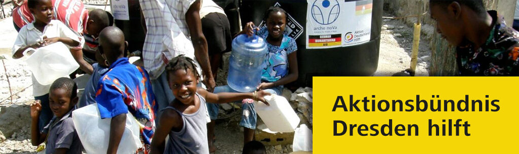Die Landeshauptstadt Dresden und die Dresdner Hilfsorganisation arche nova - Initiative für Menschen in Not e. V. haben 2005 ihr gemeinsames Aktionsbündnis „Dresden hilft" gegründet.