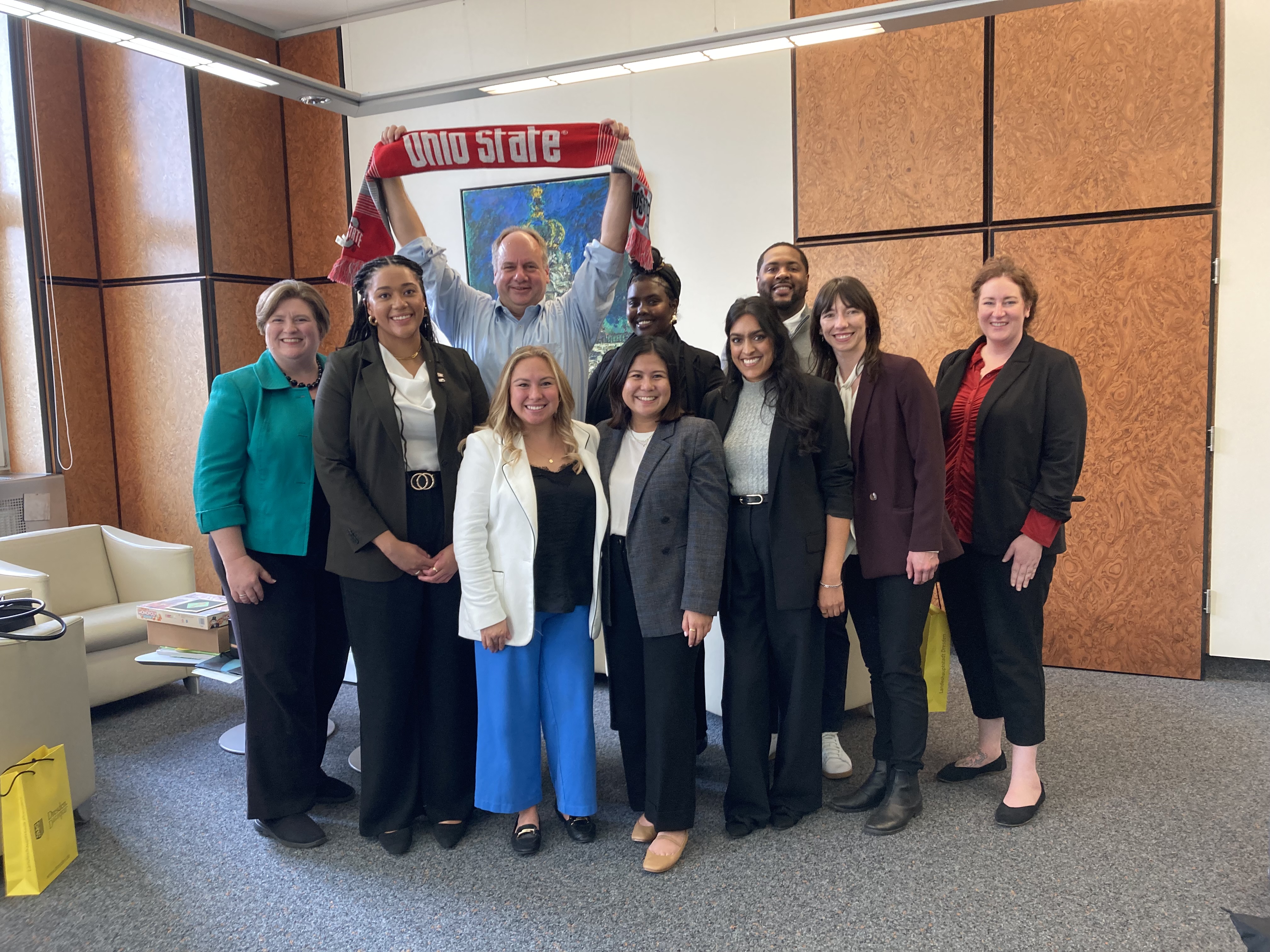 Sieben Nachwuchsführungskräfte aus verschiedenen Branchen in Columbus, Ohio besuchten im Oktober 2024 Dresden. Organisiert wurde das Programm durch die Partnerorganisation Greater Columbus Sister Cities International (GCSCI). Bei verschiedenen Terminen erfuhr die Gruppe mehr zur Verkehrsentwicklungsplanung, den Herausforderungen in der Integrations- und Wohnungspolitik und der Arbeit der Handwerkskammer Dresden. Auch mit OB Hilbert kamen die jungen Leute ins Gespräch und stellten viele Rückfragen zu aktuellen Themen. Den Abschluss bildete ein lockerer Austausch mit Akteuren der Städtepartnerschaft aus dem BSZ Elektrotechnik und dem Marathon-Stammtisch.