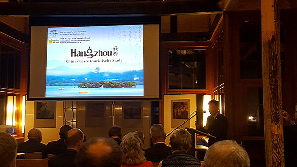 Gleichwohl ist Hangzhou in Dresden noch kaum bekannt. Im Rahmen einer Festveranstaltung aus Anlass des 10. Jubiläums der Städtepartnerschaft stellte Yujie Yao, Wahldresdner und Direktor des Kontaktbüros Dresden-Hangzhou, die Stadt in einem Vortrag vor und berichtete von der Städtepartnerschaft und ihrer Vorgeschichte.