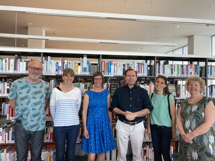 Mitte Juni waren fünf Straßburger Kolleginnen und Kollegen zu Gast in den Städtischen Bibliotheken Dresden. Sie hatten unter anderem Gelegenheit die erste Ausgabe des Kinderliteraturfestivals „Kinder.Bücher! Das lesestarke Kinderliteraturfestival“ kennenzulernen, Schulbibliotheken zu besuchen oder zu testen, wie eine Stadtteilbibliothek an einem Sonntagvormittag auch ohne reguläres Bibliothekspersonal nutzbar ist.