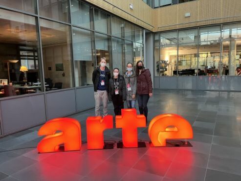 Den Donnerstagvormittag verbrachten wir dann im intensiven Austausch und diskutierten über die vielseitigen Filme. Mittagessen gab es dieses Mal nicht im Hotel, sondern im Straßburger Rathaus – gemeinsam mit den Veranstaltern des Festivals, der stellvertretenden Bürgermeisterin und der deutschen Konsulin. Nachdem wir ins Kino zurückgekehrt waren, um die Verfilmung der Schachnovelle von 2021 zu sehen, wurden wir am Nachmittag in der ARTE Zentrale am Ufer der Ill empfangen. Wir durften das Studio des ARTE-Journals besichtigen und uns im Anschluss mit Laurence Rille, die schon in vielen Bereichen des Senders gearbeitet hat und Teil vieler Filmjurys war, über Kurzfilme austauschen. Darauf folgte abends die zweite Präsentation der "Courts métrages".