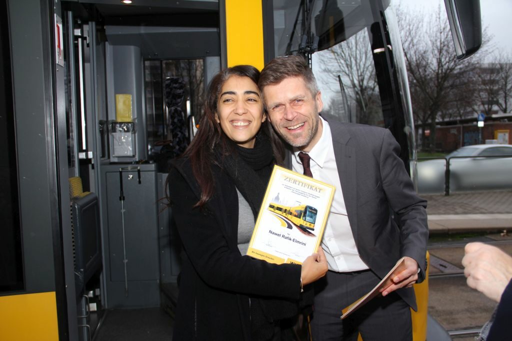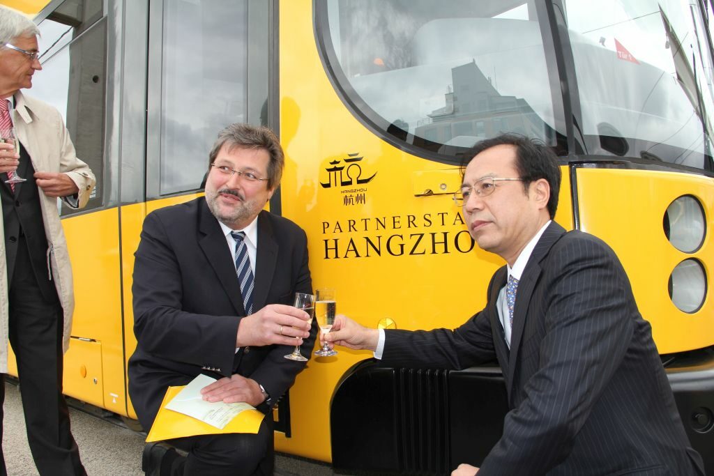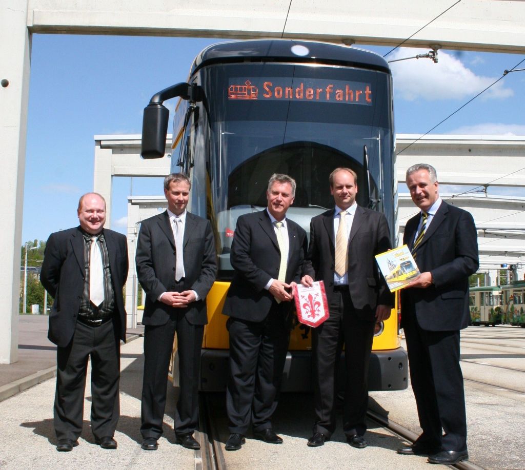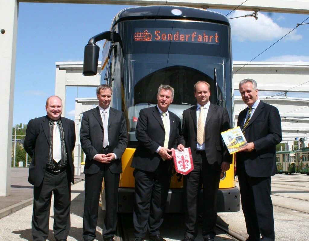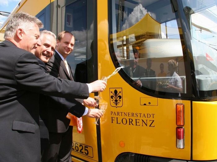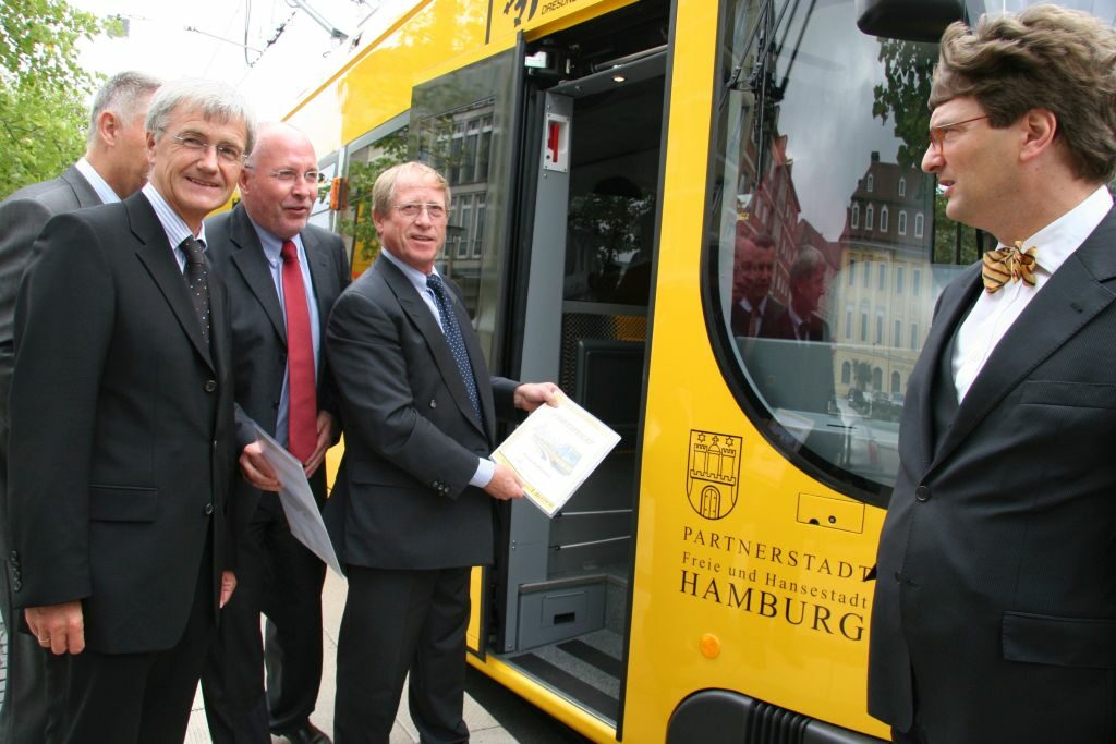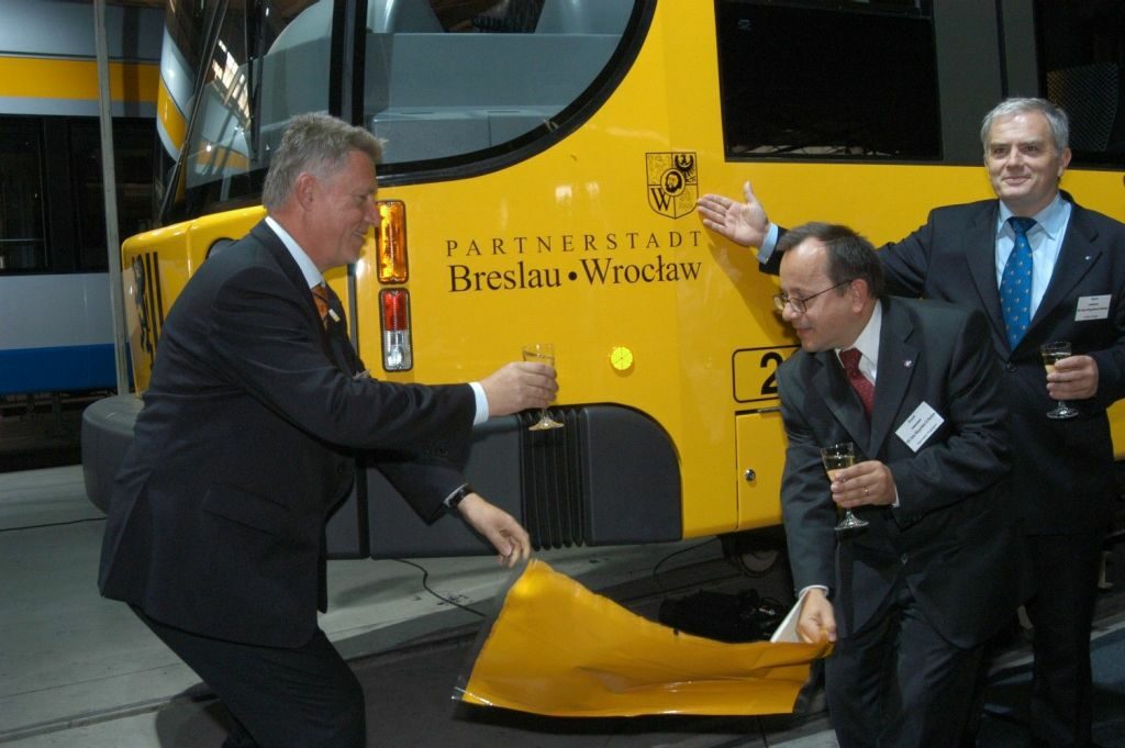 Getauft wurden sie stets von einer Repräsentantin oder einem Repräsentanten der jeweiligen Partnerstadt gemeinsam mit den Vorstandschefs der Dresdener Verkehrsbetriebe und dem Dresdner Oberbürgermeister oder seinen Vertretern. Und die ersten Kilometer durch Dresden durften die Gäste aus den Partnerstädten dann auch immer selbst ans Steuer, natürlich immer mit der kompetenten Anleitung der DVB-Fahrlehrerin.